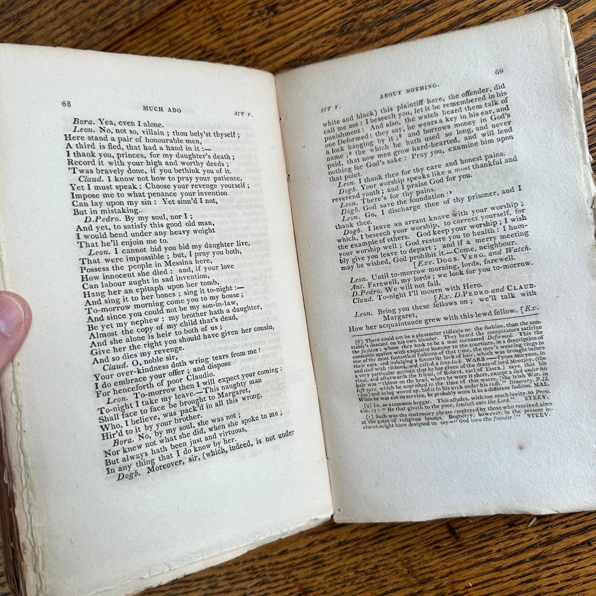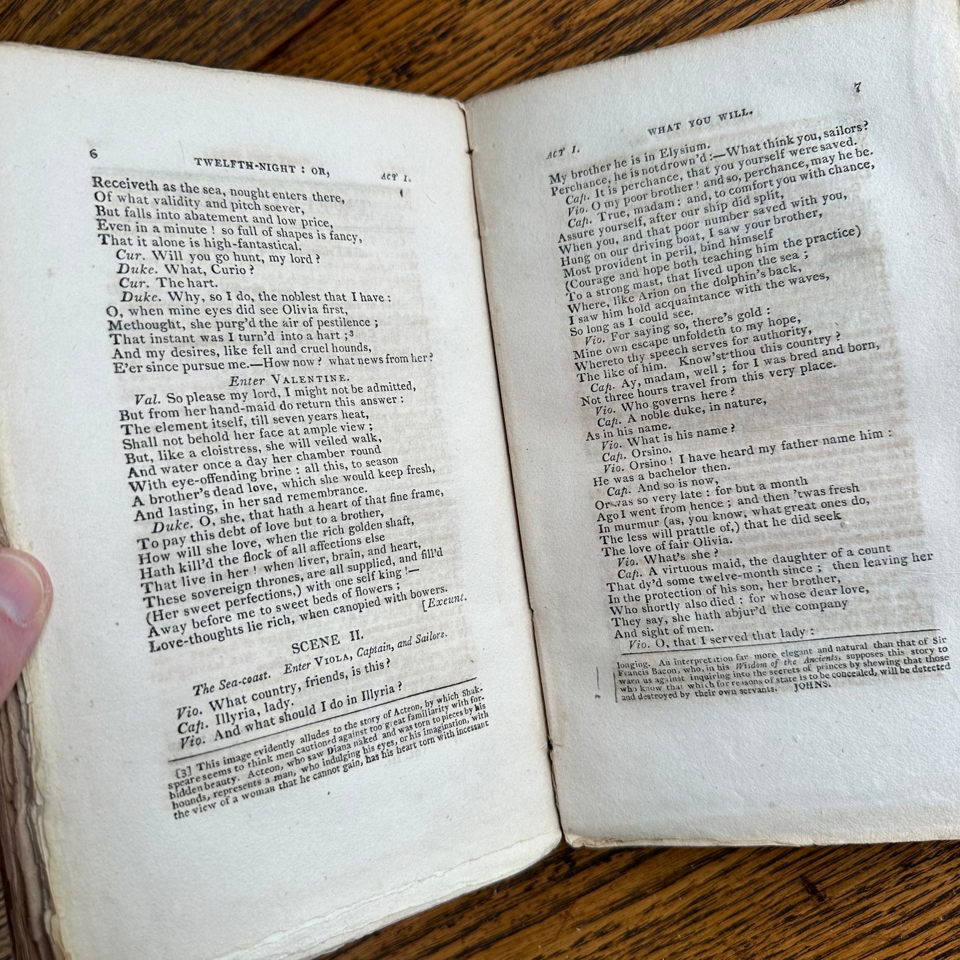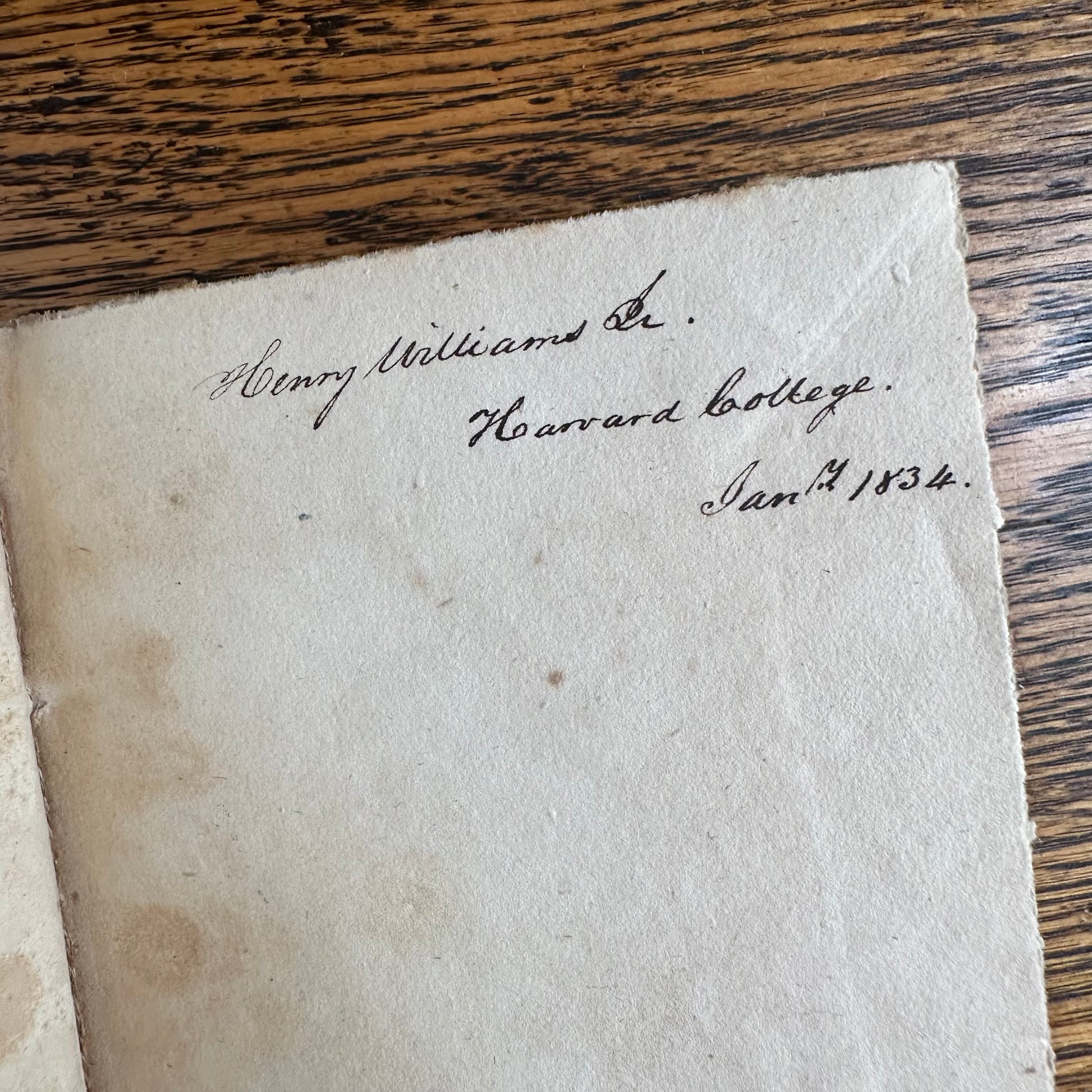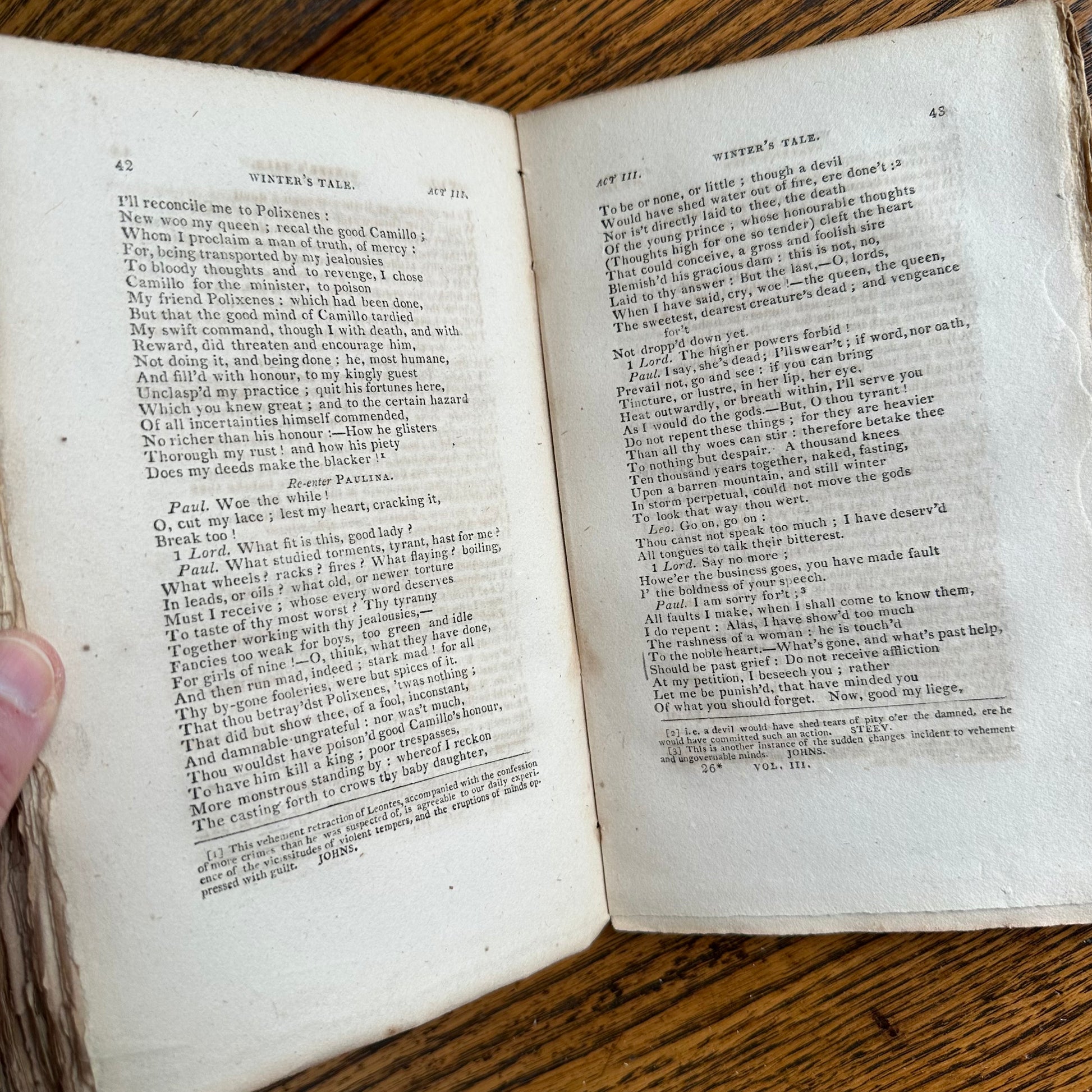This is the complete set of nine volumes of The Plays of William Shakspeare. The spelling of “Shakspeare” reflects the inconsistent spelling practices of the time. The nine volumes were published between 1810 and 1812 by Monroe & Francis of Boston. In 1834, the set belonged to Henry Williams Jr. of Harvard College. Each volume contains minimal etchings. This set is in very delicate condition as it is over 210 years old. The books are missing parts of their spines, pages are stained with age, and sections of some volumes have separated from the binding. I used the books as decor for several years. The books measure 4.75” x 7.75” and contain approximately 500 pages each.
