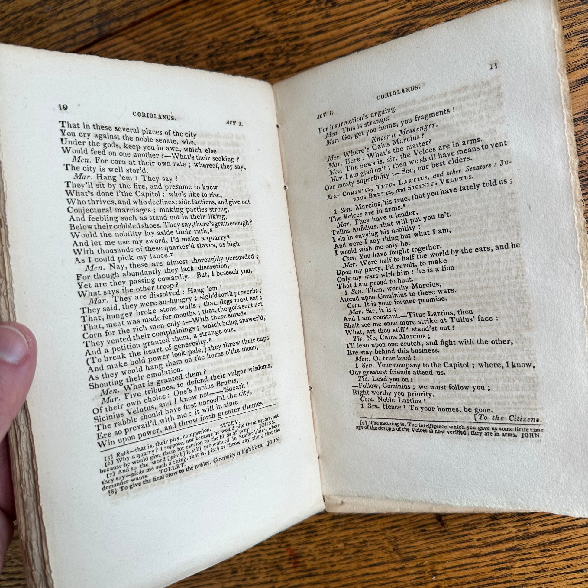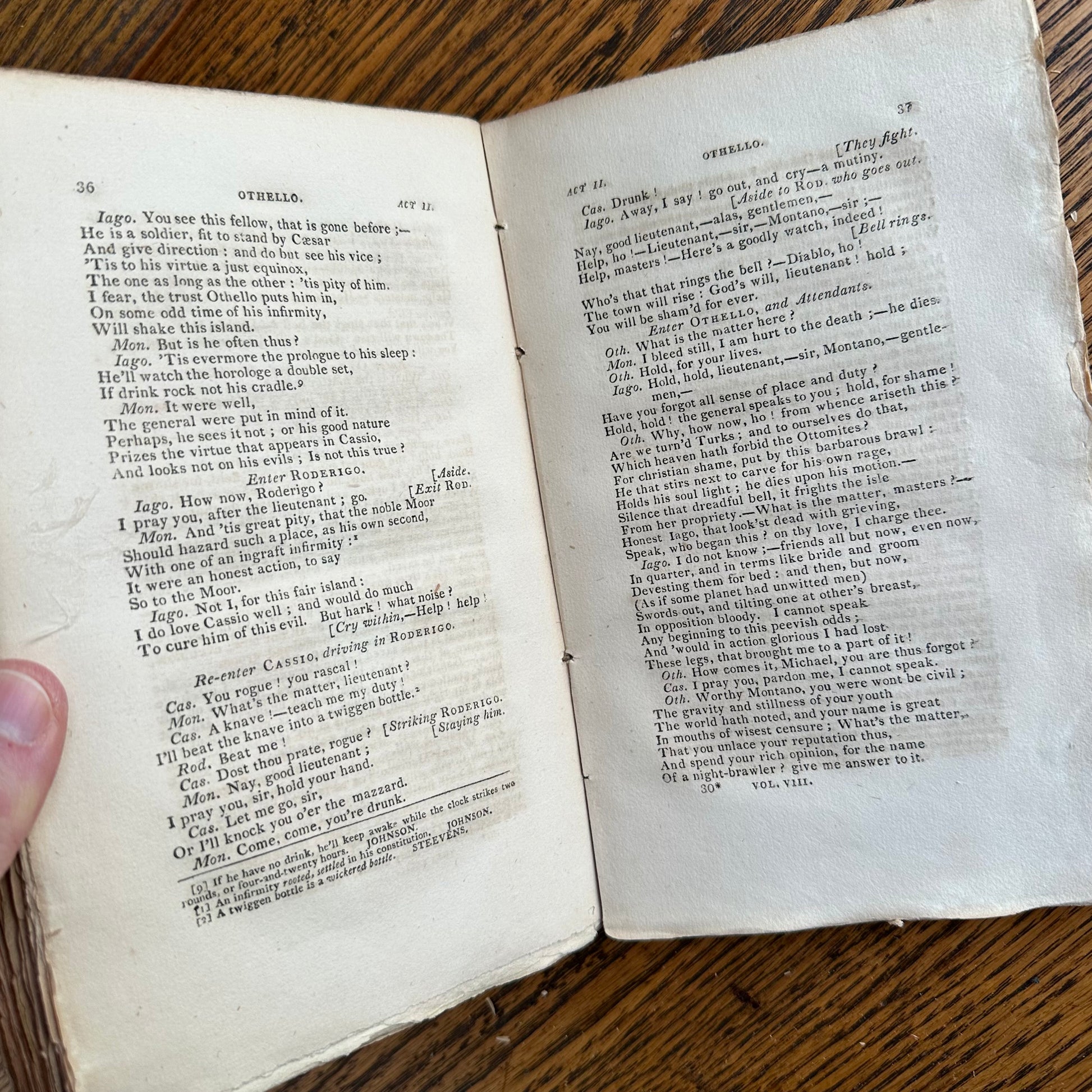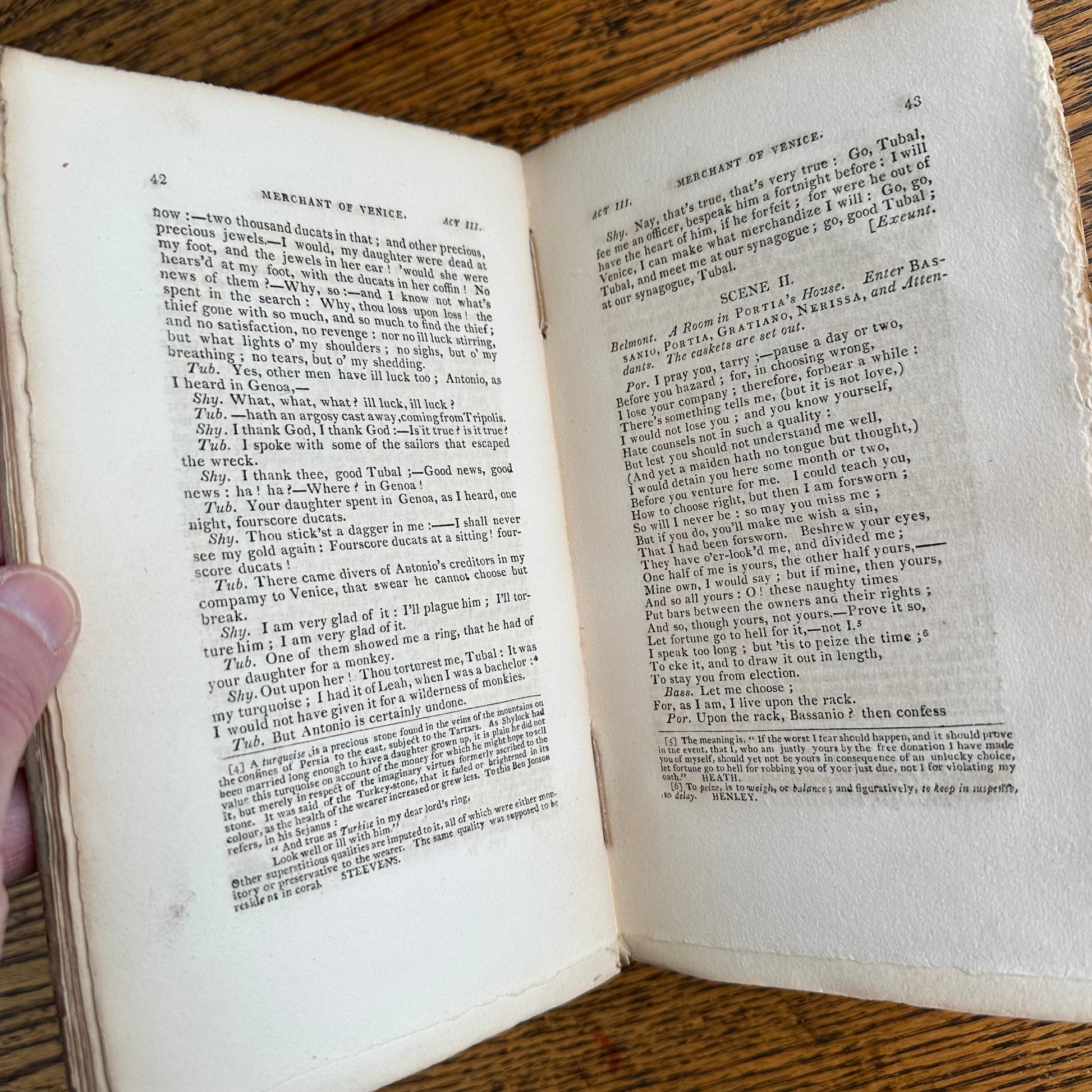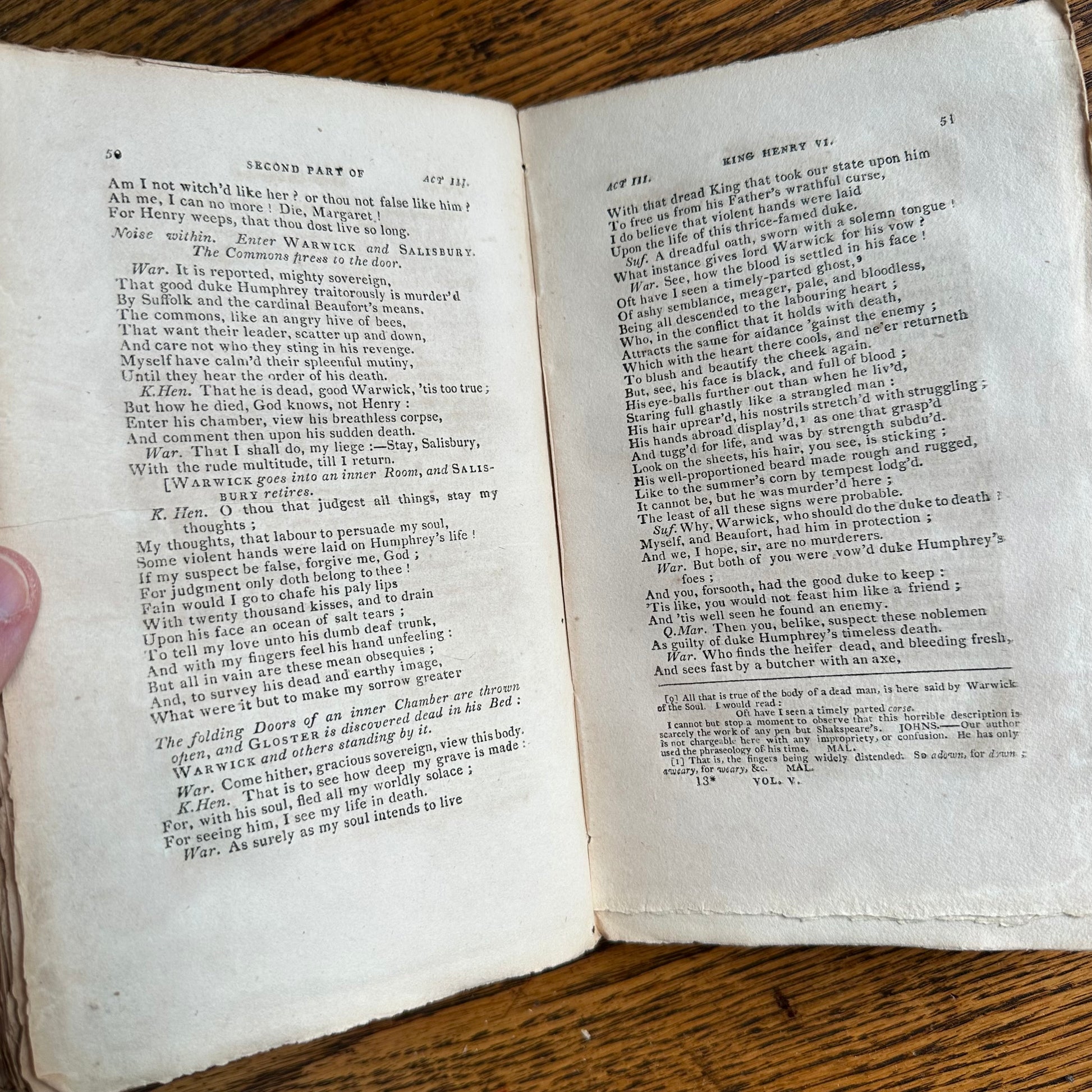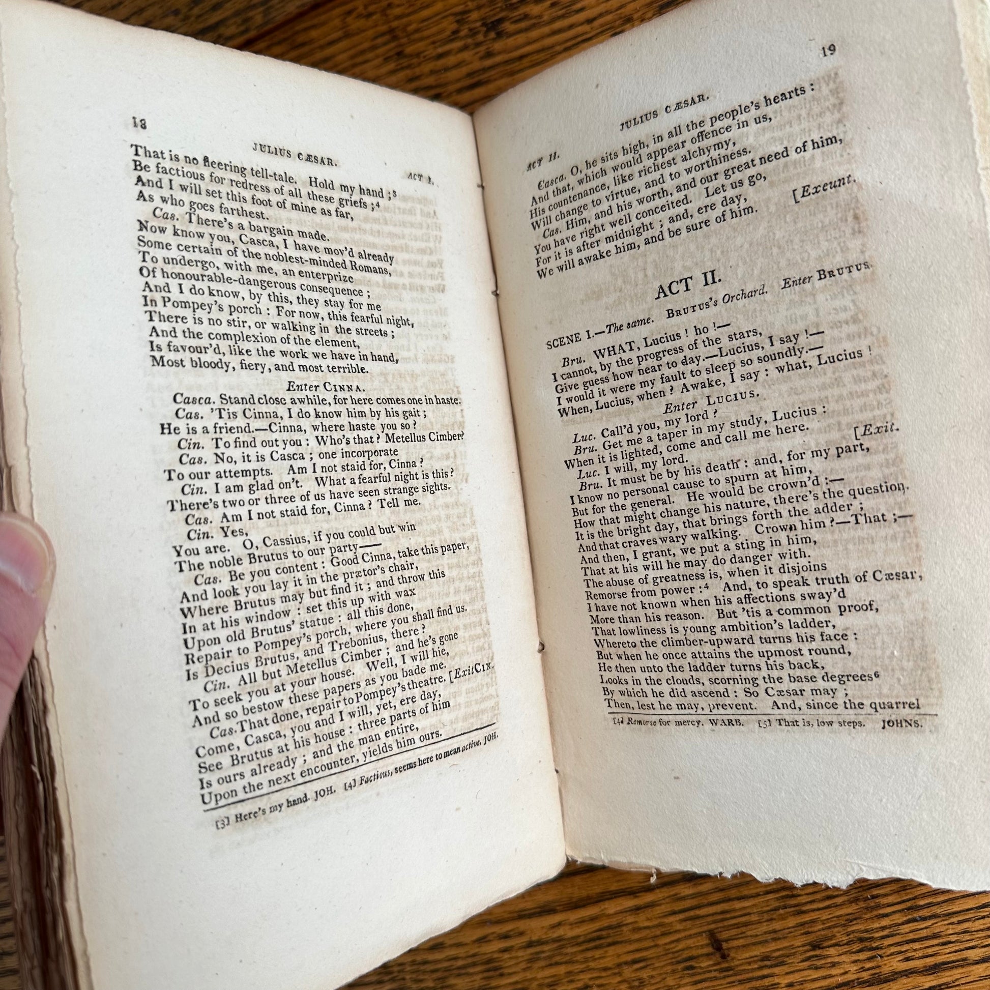 This is the complete set of nine volumes of The Plays of William Shakspeare. The spelling of “Shakspeare” reflects the inconsistent spelling practices of the time. The nine volumes were published between 1810 and 1812 by Monroe & Francis of Boston. In 1834, the set belonged to Henry Williams Jr. of Harvard College. Each volume contains minimal etchings. This set is in very delicate condition as it is over 210 years old. The books are missing parts of their spines, pages are stained with age, and sections of some volumes have separated from the binding. I used the books as decor for several years. The books measure 4.75” x 7.75” and contain approximately 500 pages each.