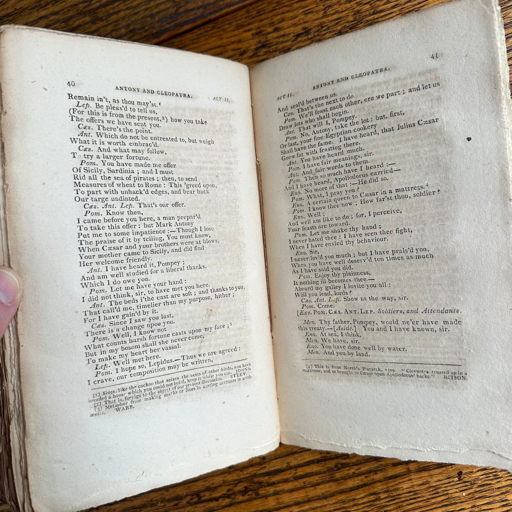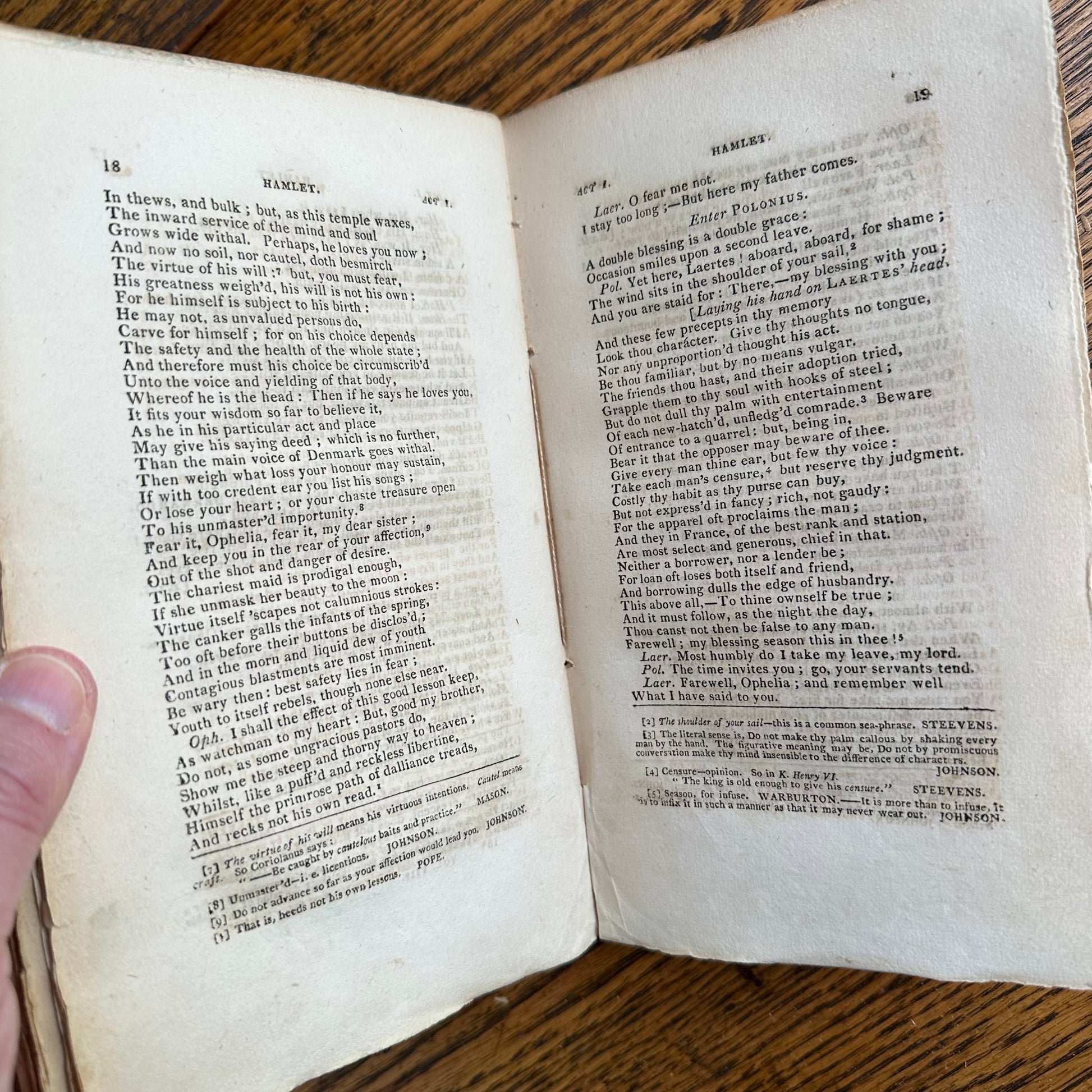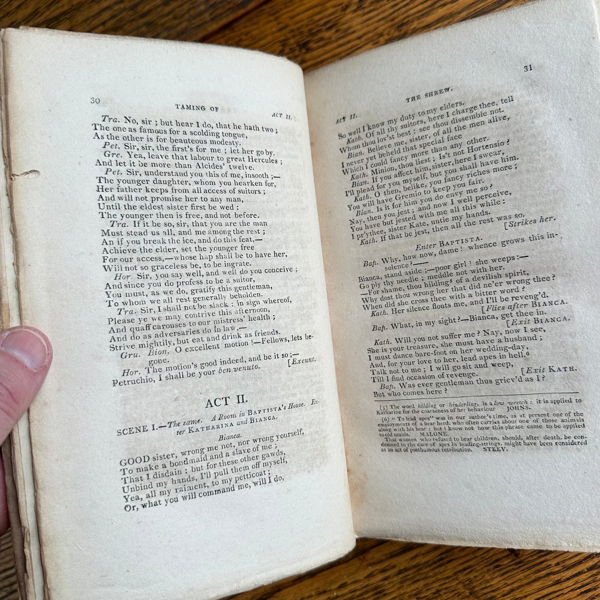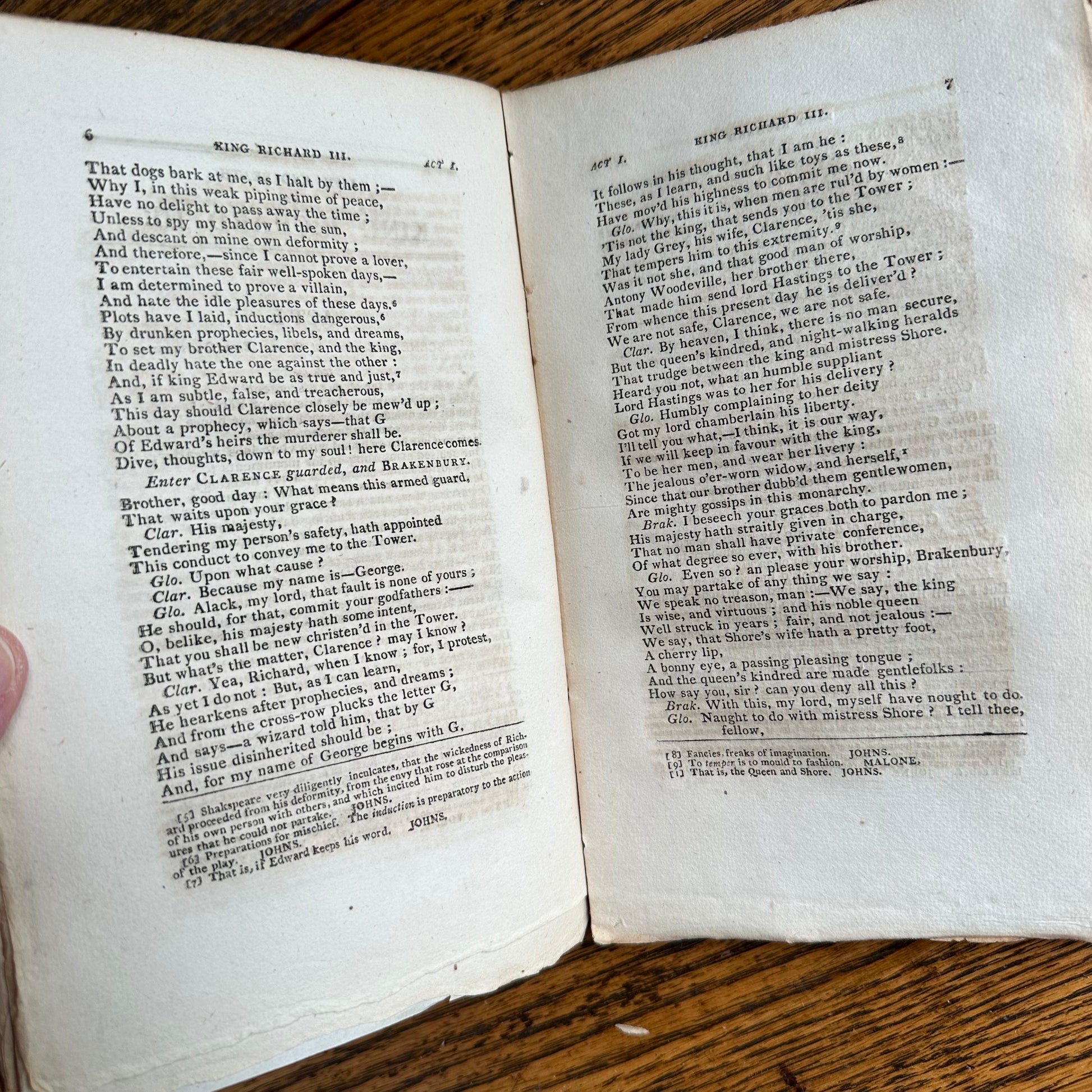 This is the complete set of nine volumes of The Plays of William Shakspeare. The spelling of “Shakspeare” reflects the inconsistent spelling practices of the time. The nine volumes were published between 1810 and 1812 by Monroe & Francis of Boston. In 1834, the set belonged to Henry Williams Jr. of Harvard College. Each volume contains minimal etchings. This set is in very delicate condition as it is over 210 years old. The books are missing parts of their spines, pages are stained with age, and sections of some volumes have separated from the binding. I used the books as decor for several years. The books measure 4.75” x 7.75” and contain approximately 500 pages each.