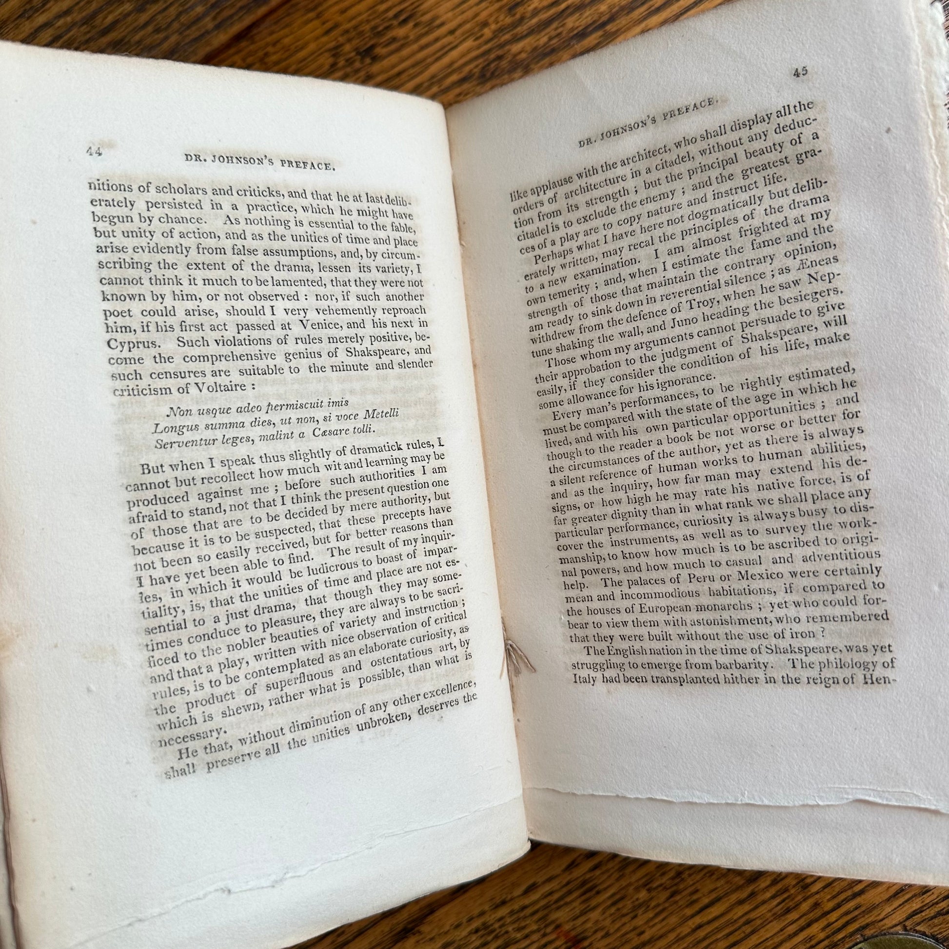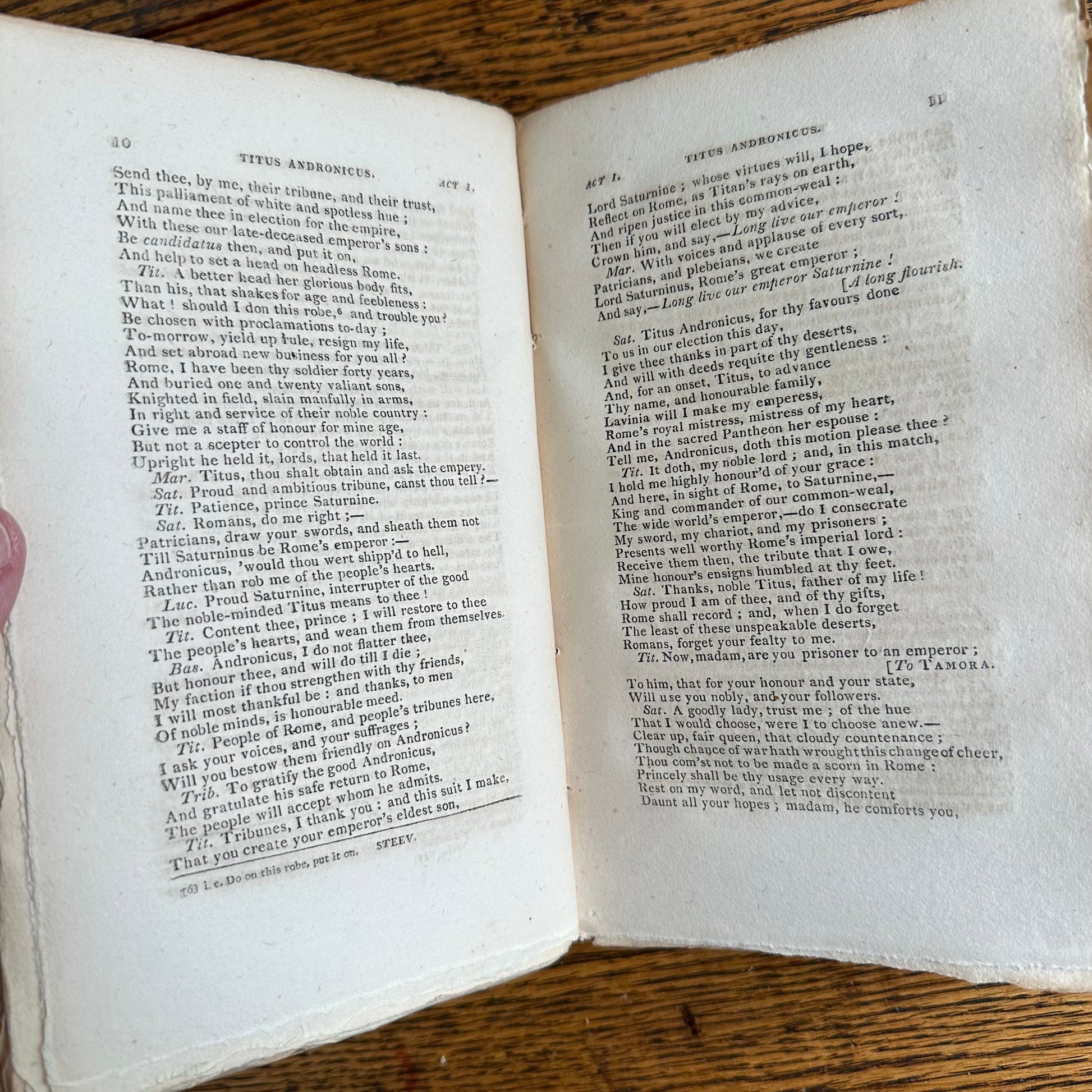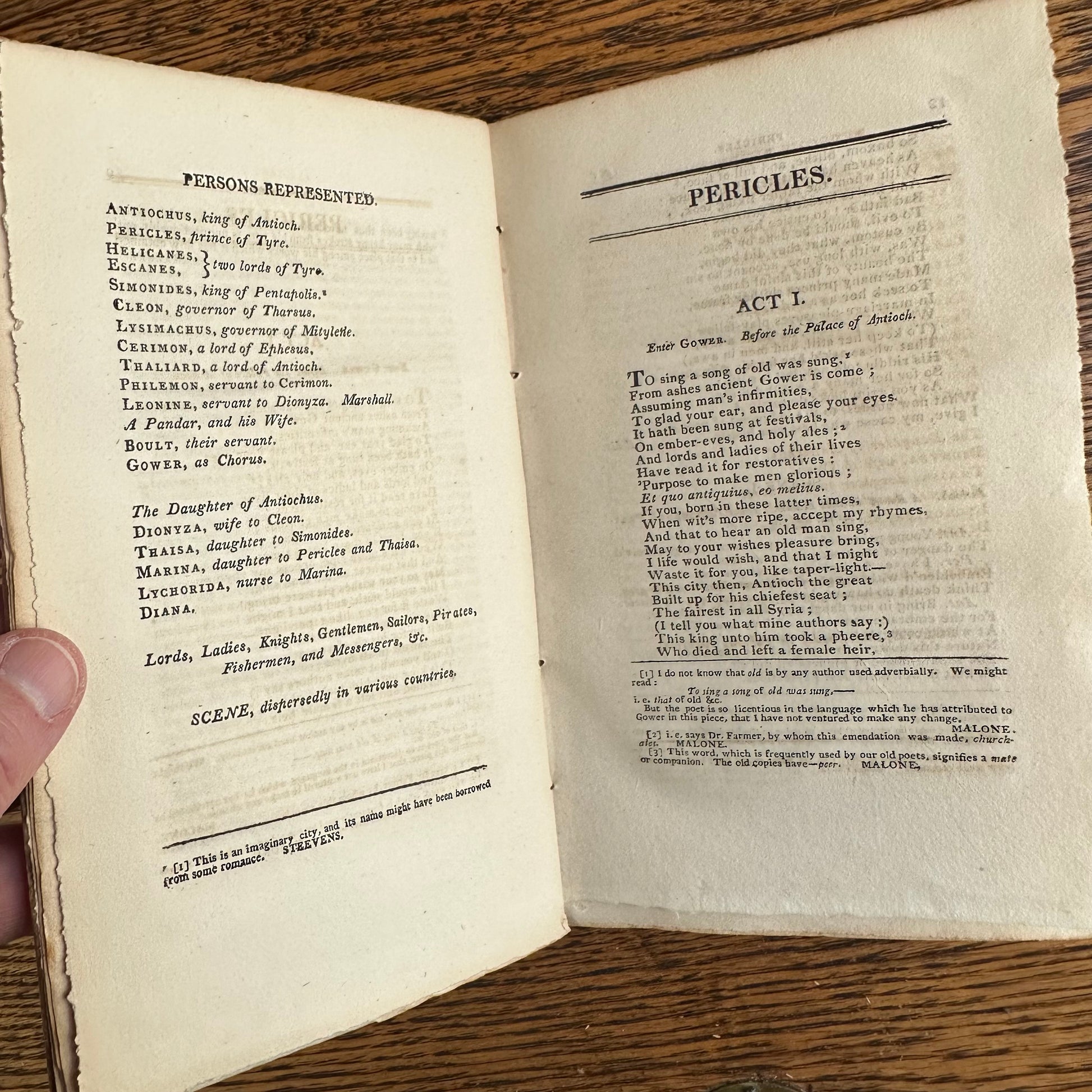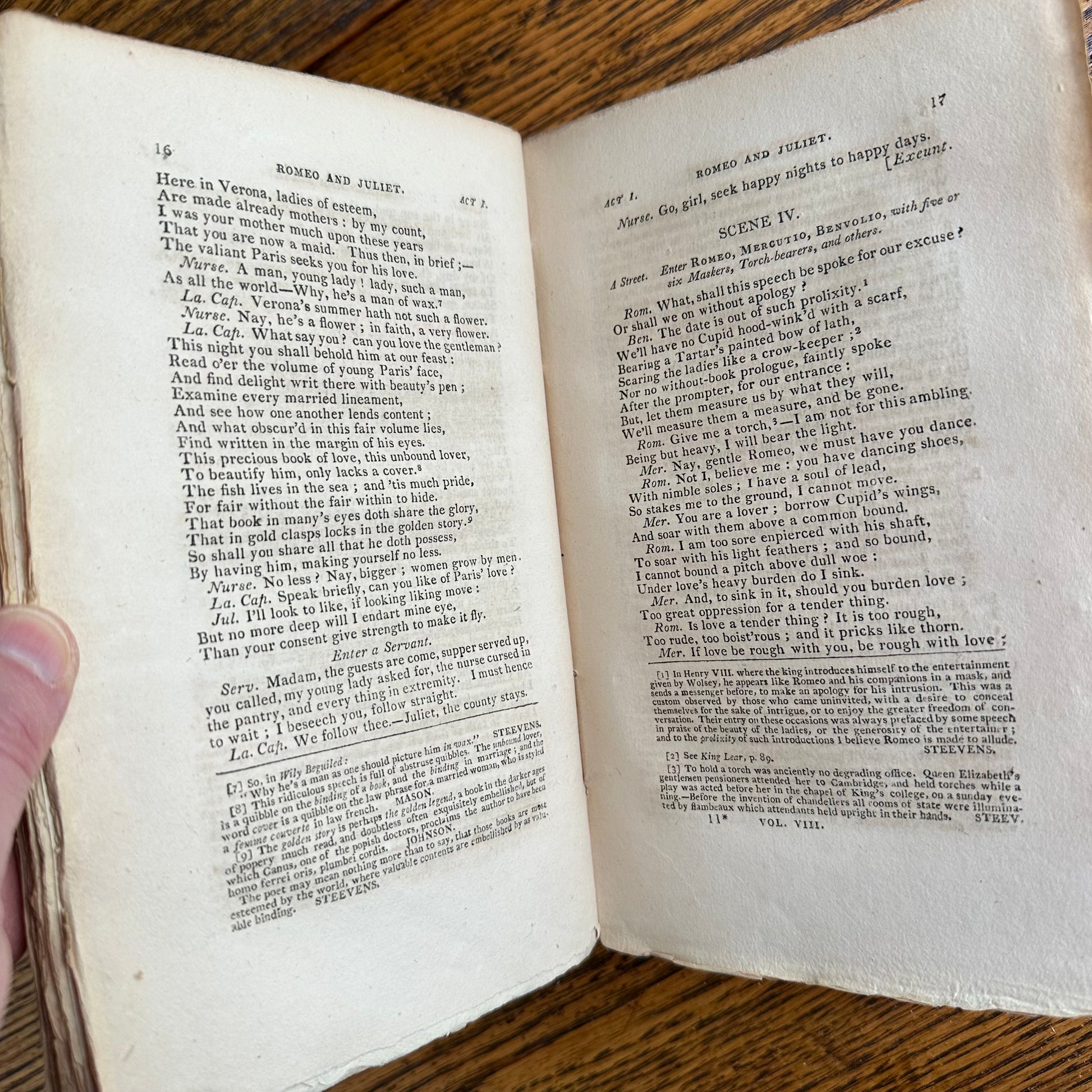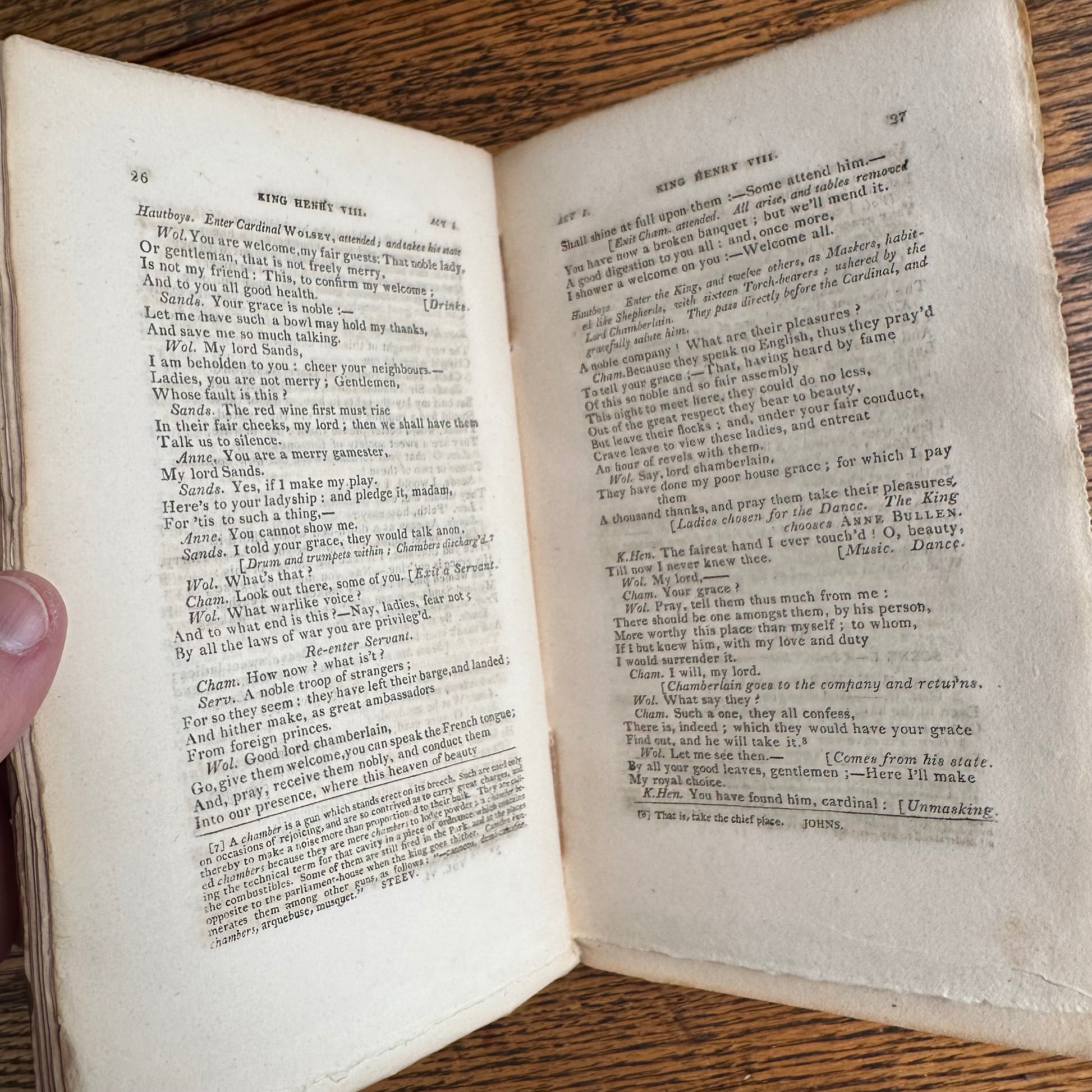 This is the complete set of nine volumes of The Plays of William Shakspeare. The spelling of “Shakspeare” reflects the inconsistent spelling practices of the time. The nine volumes were published between 1810 and 1812 by Monroe & Francis of Boston. In 1834, the set belonged to Henry Williams Jr. of Harvard College. Each volume contains minimal etchings. This set is in very delicate condition as it is over 210 years old. The books are missing parts of their spines, pages are stained with age, and sections of some volumes have separated from the binding. I used the books as decor for several years. The books measure 4.75” x 7.75” and contain approximately 500 pages each.
