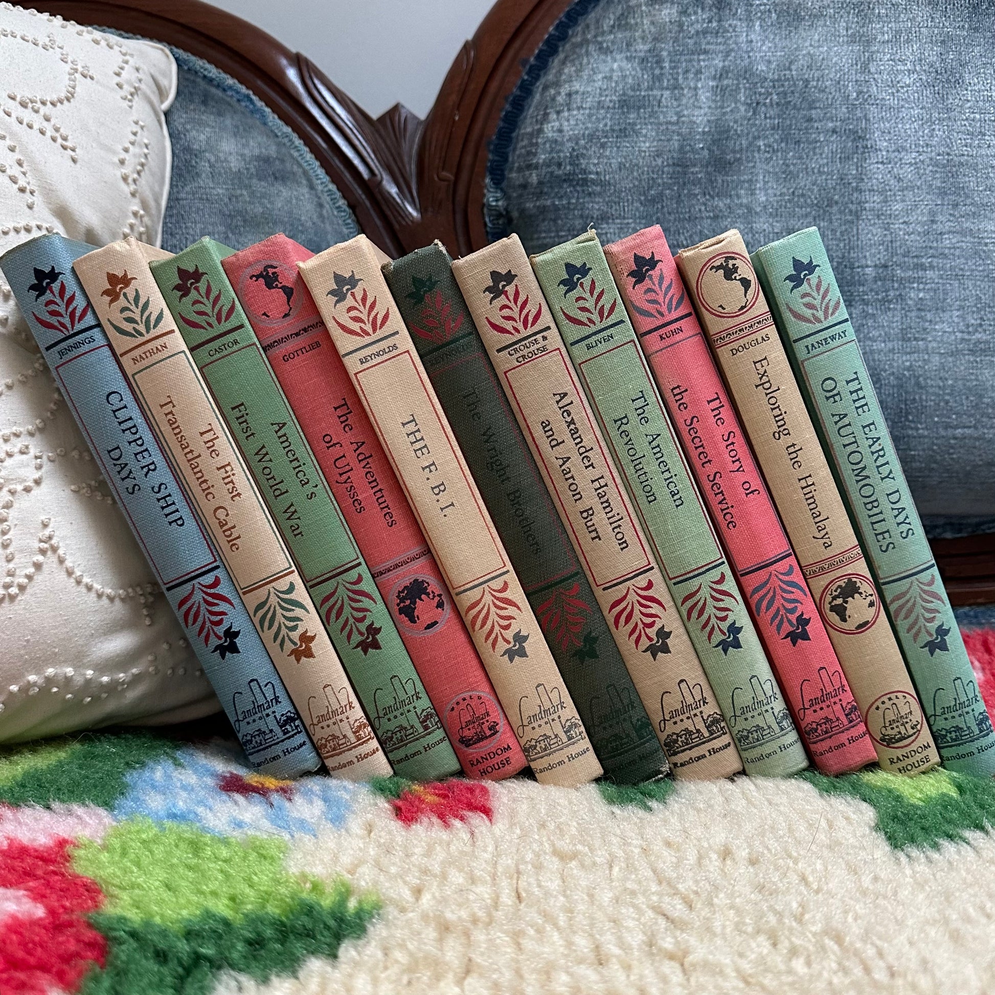 This is a set of 11 books from the Landmark Books series. The Landmark Books series is one of the most beloved and collectible nonfiction children’s book series of the 20th century — especially known for making history and biography exciting for young readers. The books were written for middle-grade to early-teen readers between 1950 and 1970 and contain illustration and photographs. The set was published by Random House in NY. The books in this set vary in condition from good to great. A few of the titles have staining on their covers, but the interior pages are in great, readable condition. This would be an excellent set for decor in a home library or children’s room. The books measure 5.75” x 8.5” and contain around 200 pages.