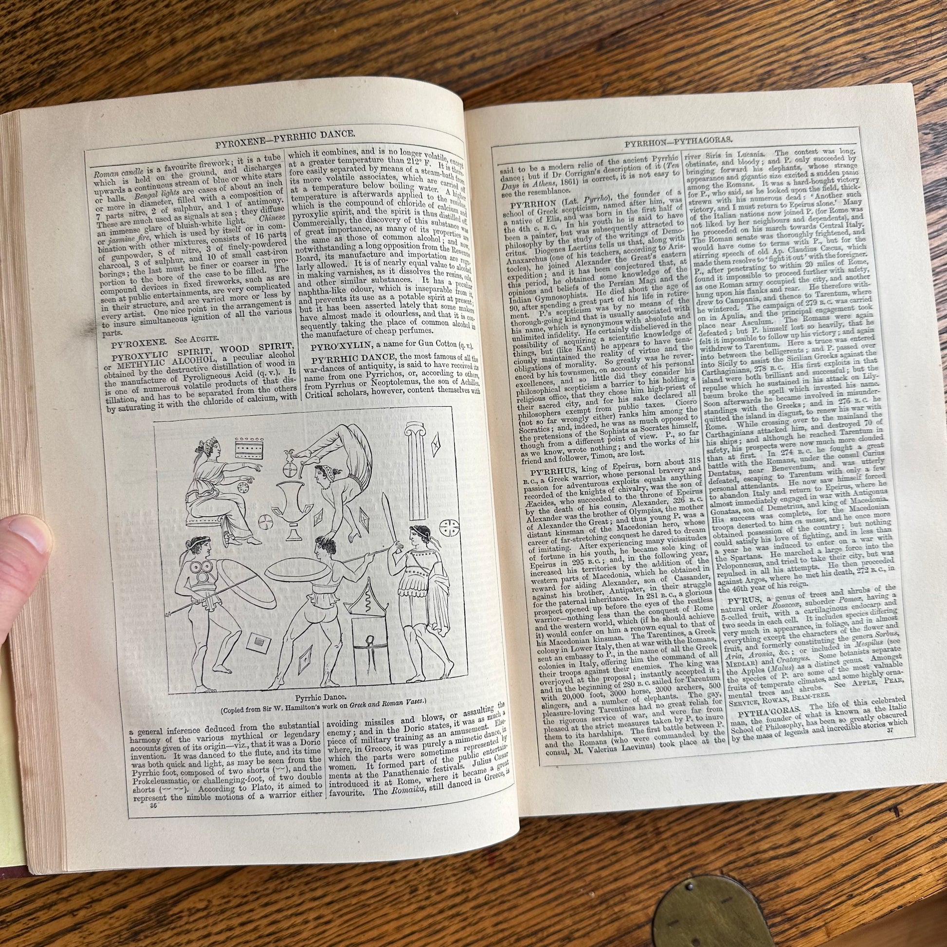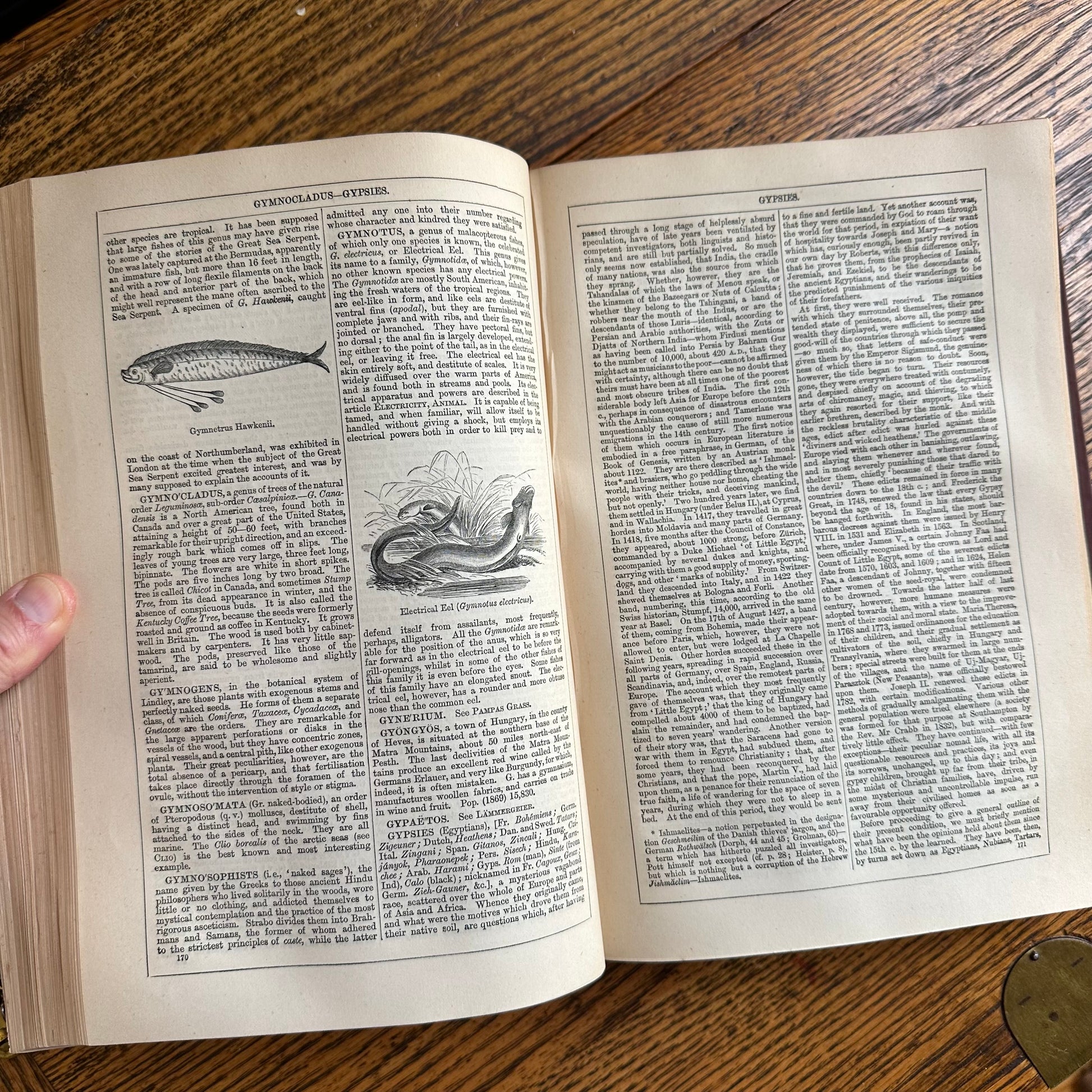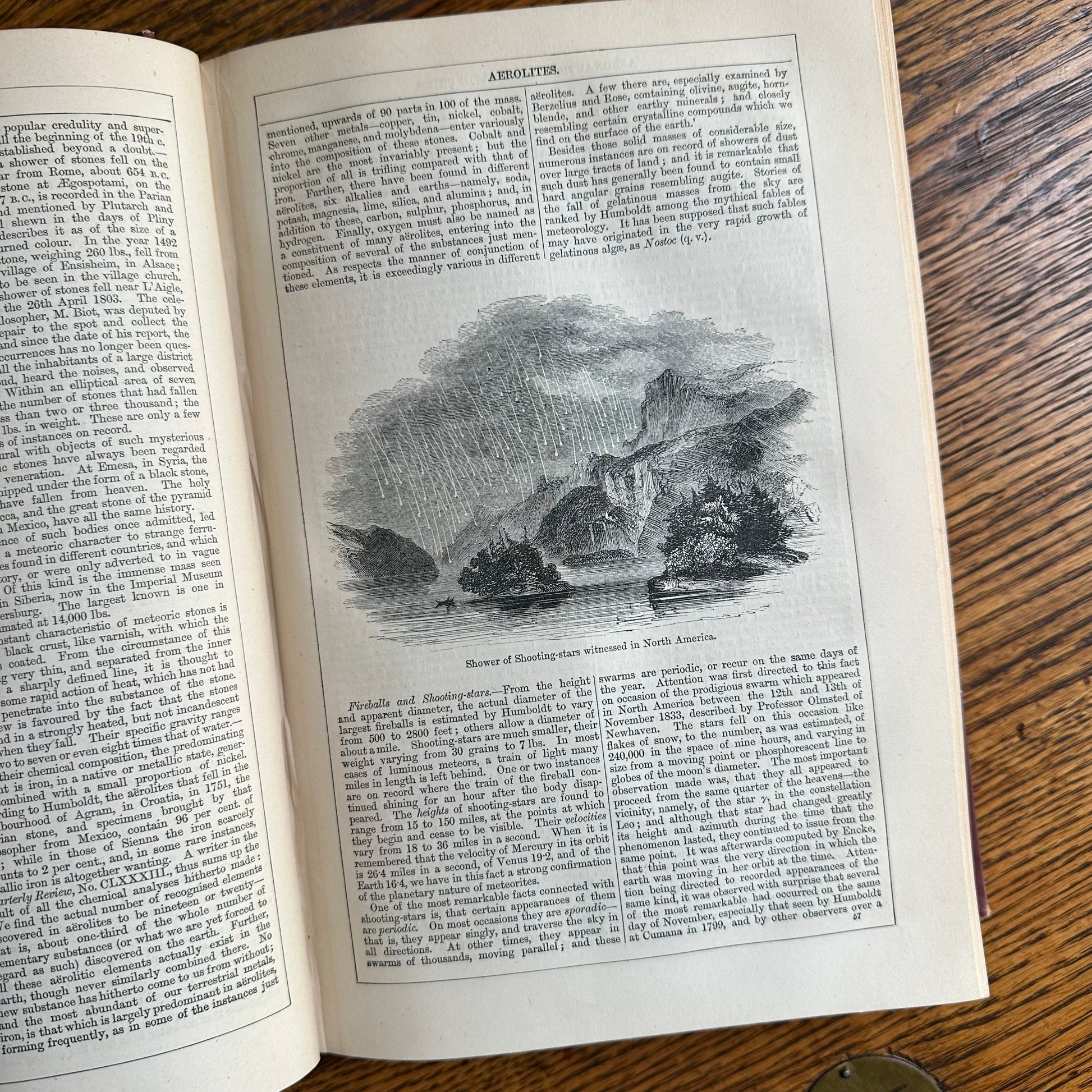 This is a rare, complete ten-volume encyclopedia set from 1877! It’s hard to believe these encyclopedias have remained together for 148 years! These encyclopedias are truly wonderful, with illustrations accompanying the entries, as well as colored maps of the major countries and regions of the world. Each volume measures 7.5” x 10.5” and contains 800-1,000 pages. The tenth volume has a supplemental section and an index. These encyclopedias are in good to great condition for their age. Some of the spines are brittle and show wear. The interior pages are in excellent condition. Use the set as part of your autumn home decor!