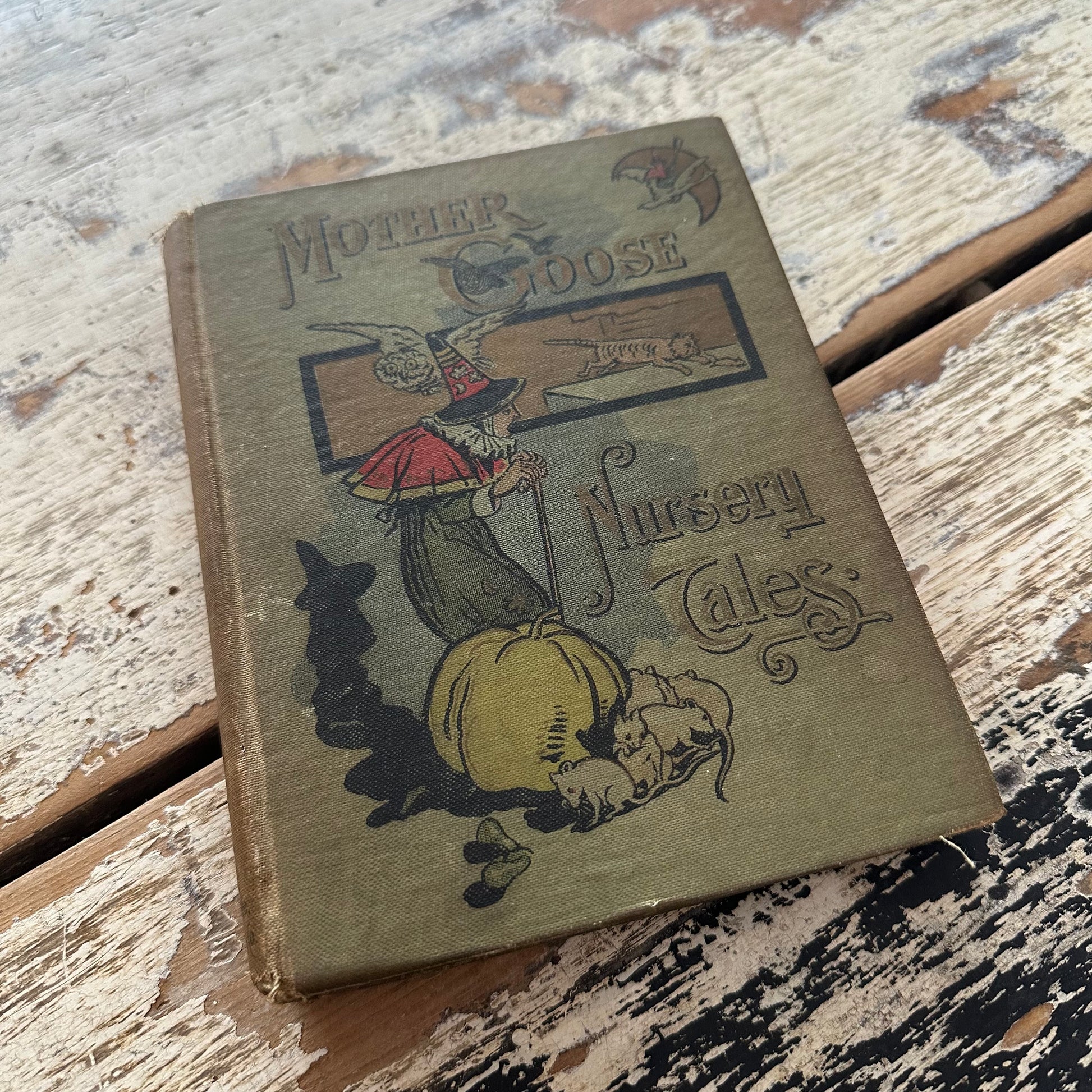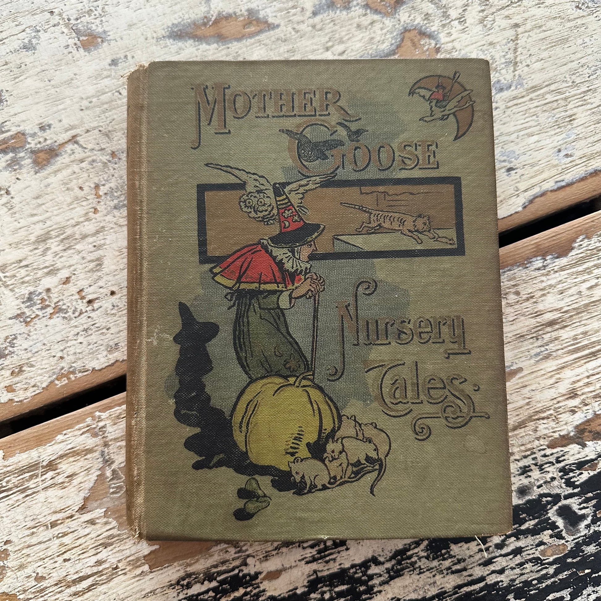 This charming volume, Mother Goose Nursery Tales, comes from The Favorite Libraryseries and was published in Boston in 1890 by DeWolfe, Fiske & Co. It brings together beloved nursery tales and fairy stories retold by a group of noted writers including R. Marriott Watson, Emily Bennett, A. M. Hoyer, L. L. Weedon, C. Nesbit, and others. It includes illustrations in color and black and white. This book measures 5.25” x 6.75” and contains 175 pages. It has soiling to the cover. All pages are still attached, but it is in delicate, very loved condition.