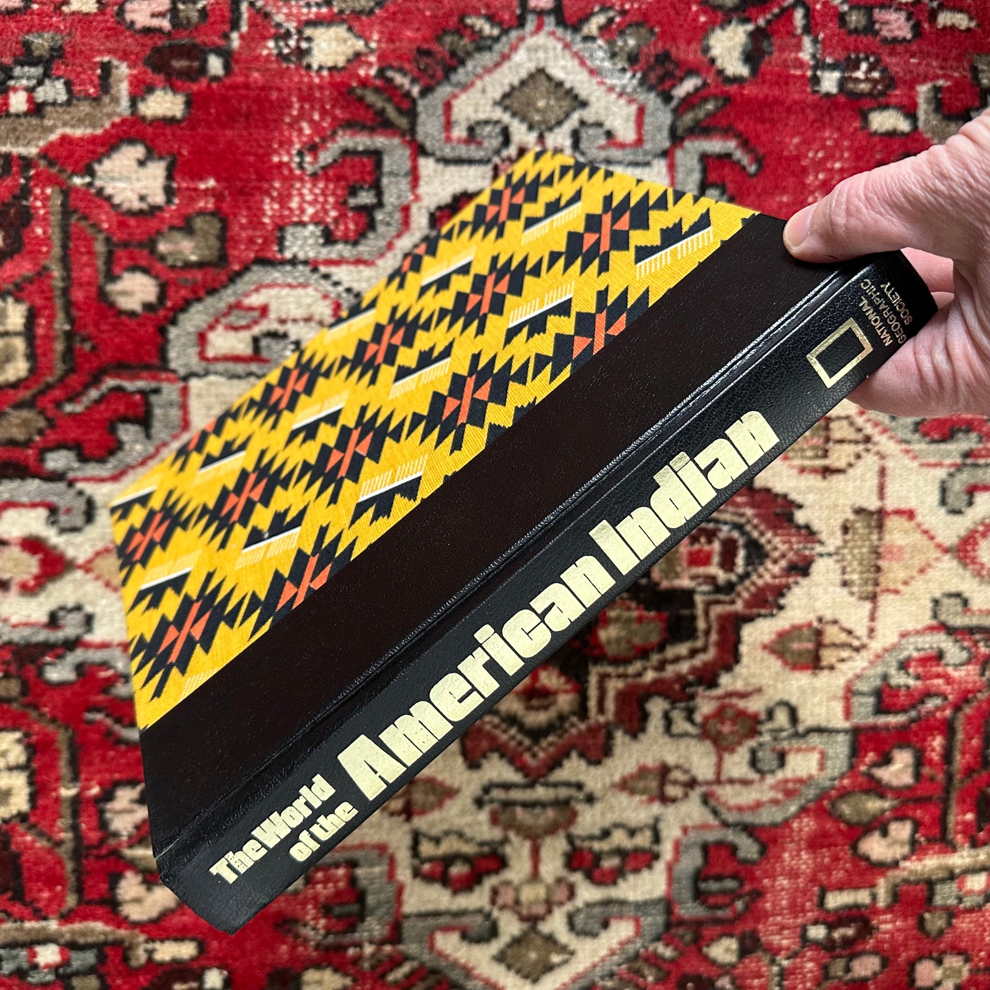 It is no secret by now that I am a big fan of vintage National Geographic coffee table books like this one! This book is The Wold of the American Indian, published in 1974. This book wears a dust jacket and the cover has a fantastic tribal-style print. The book explores the history of the American Indian through text and illustration, including photographs. There is a large fold-out map contained inside the book that supplements its contents. Though the book’s dust jacket shows wear, the book is in great condition. It measures 9.25” x 10.25” and contains 400 pages.