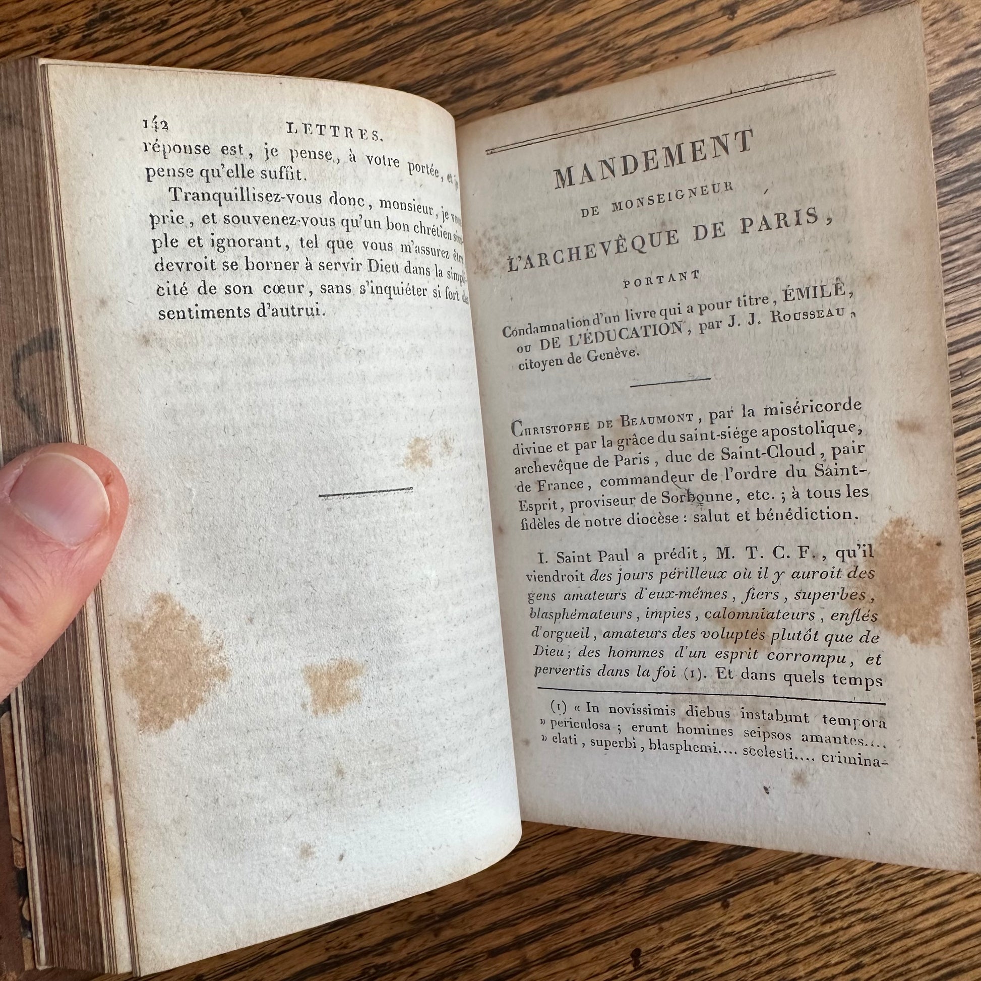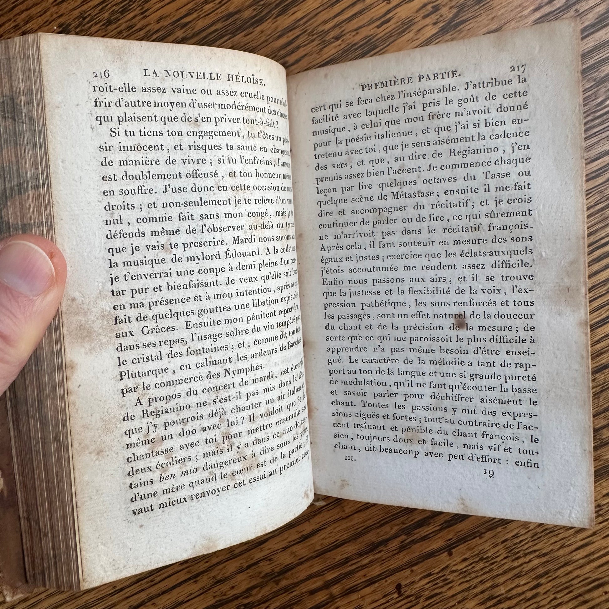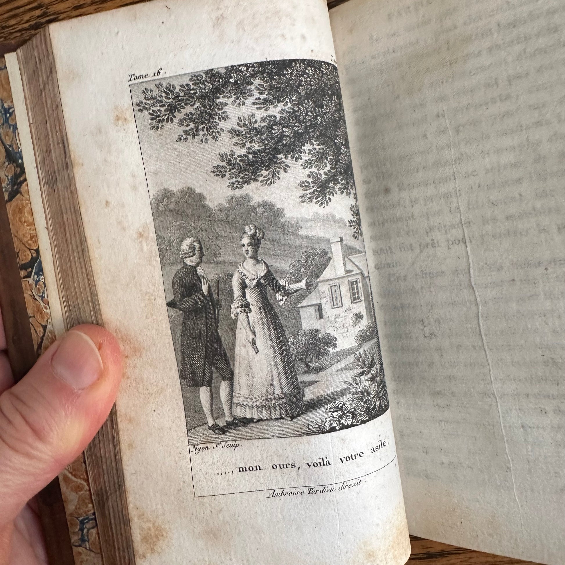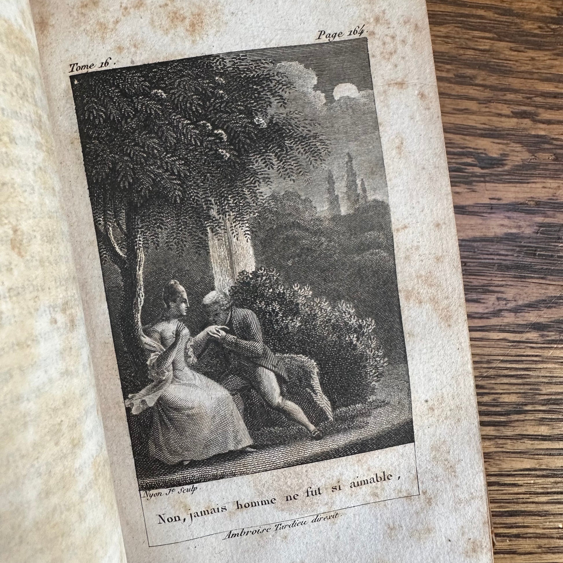 Issued as a “nouvelle édition, ornée de belles gravures,” these volumes were produced with engraved illustrations, including a finely executed engraved portrait of Rousseau at the front of the work. The text is printed on period laid paper and retains the characteristic look and feel of early nineteenth-century French book production. The title pages list Parisian booksellers Étienne Ledoux and Terné, located on the rue Pierre-Sarrazin, placing this edition firmly within the historic publishing district of Paris.