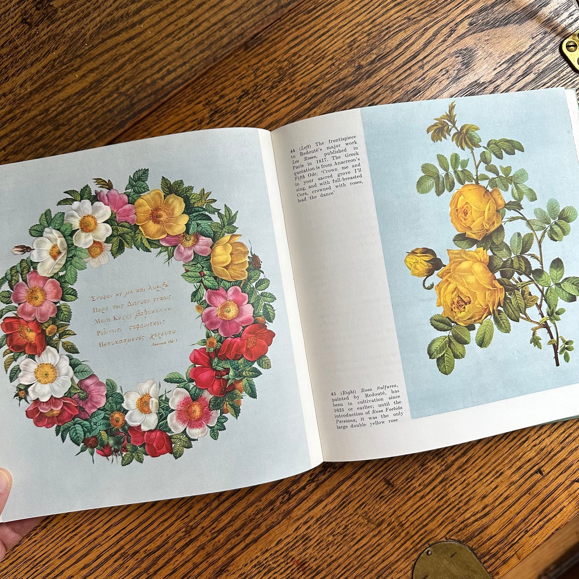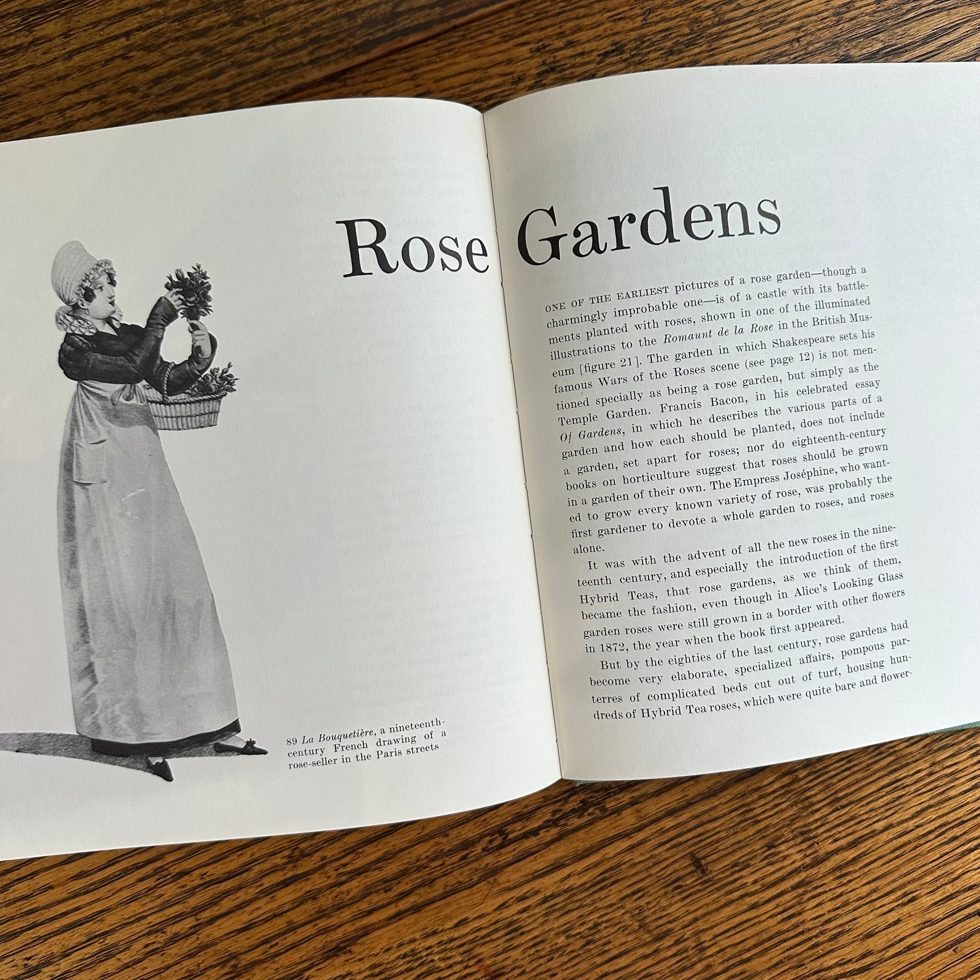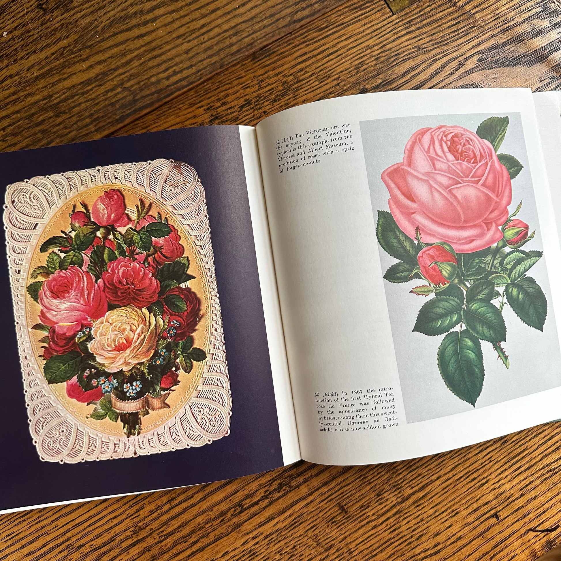 A gorgeous book of the history of roses in excellent, like-new condition with a slipcover case. This book features many gorgeous black and white, as well as color, illustrations. It is giftable. The slipcover shows wear and age. 8” x 8.5” and 128 pages.