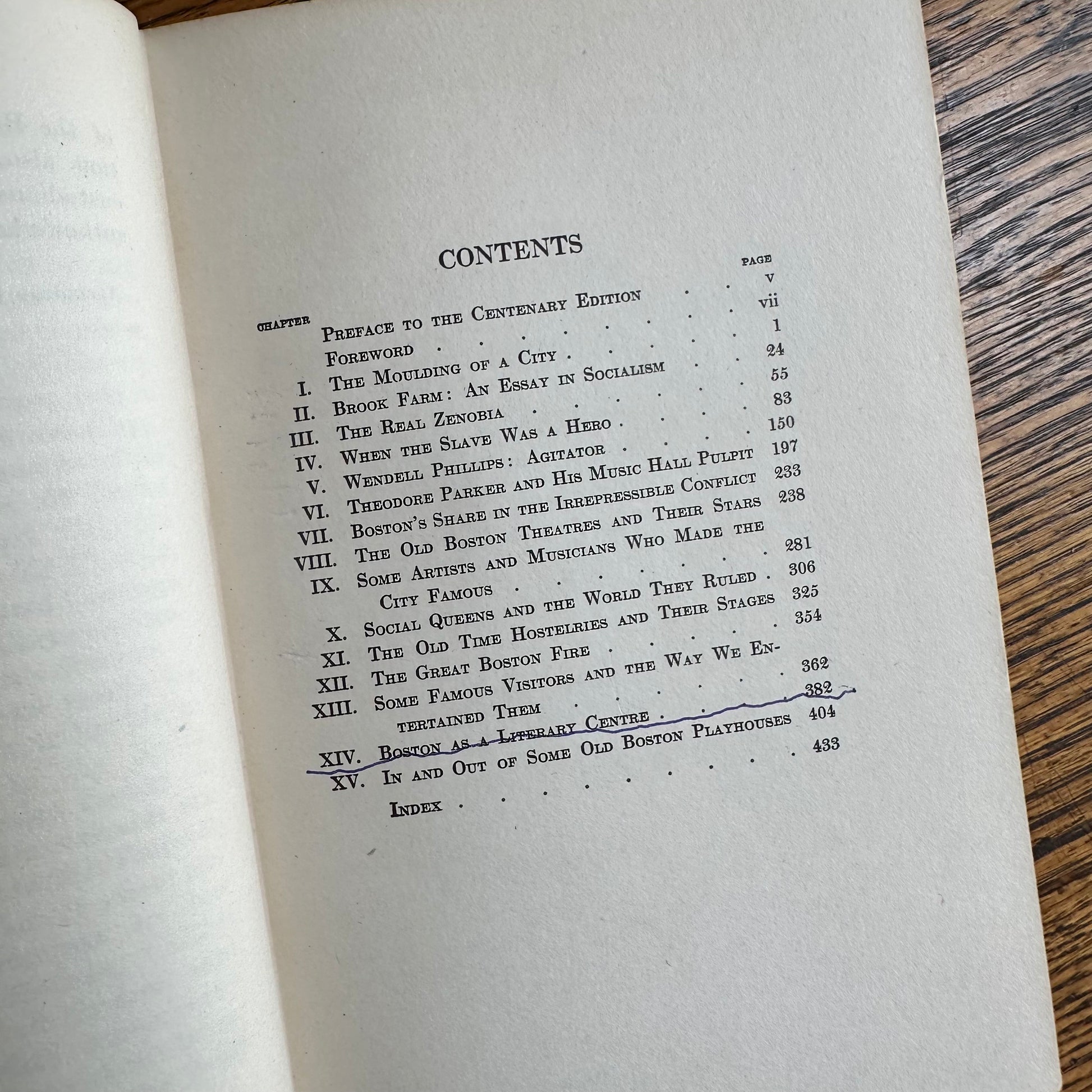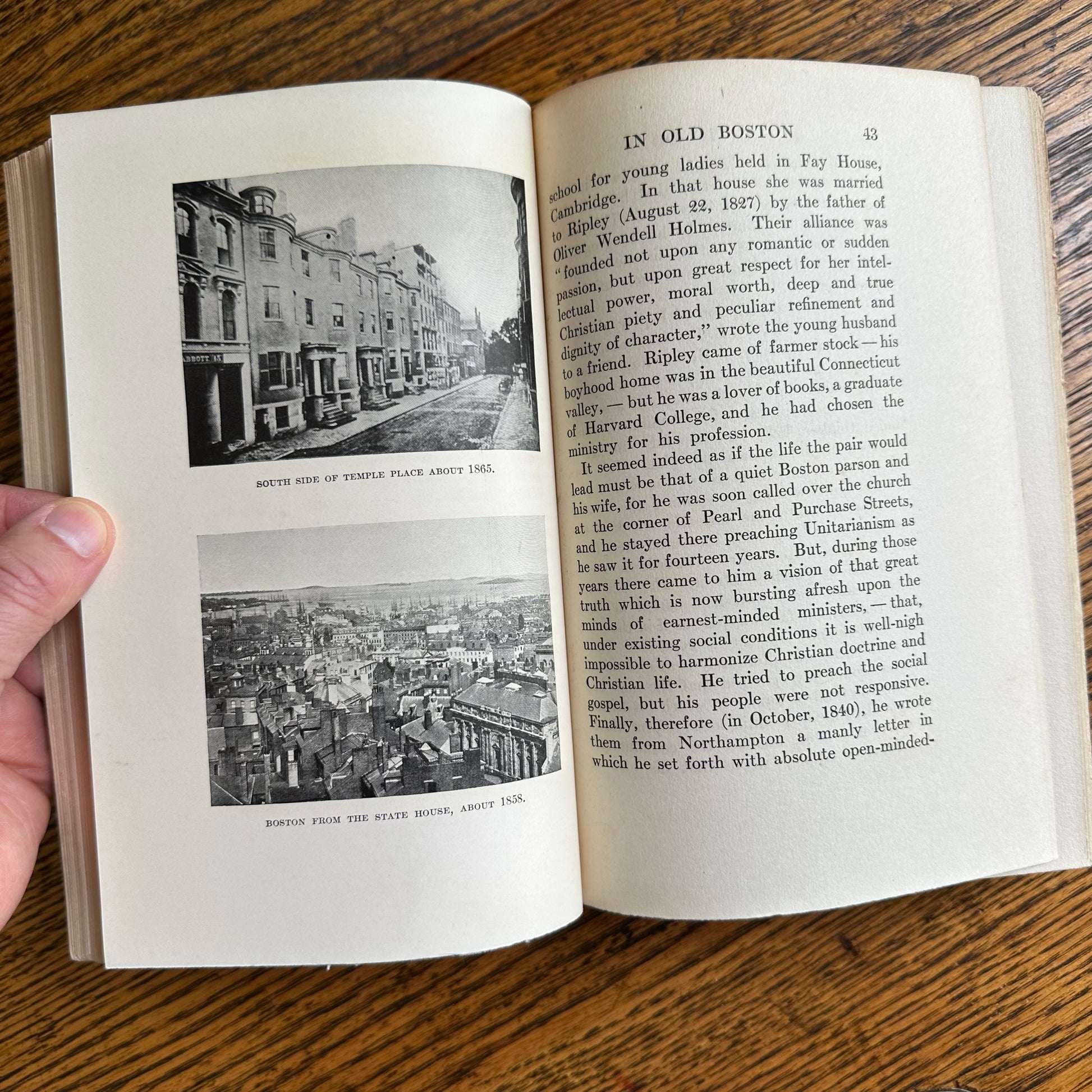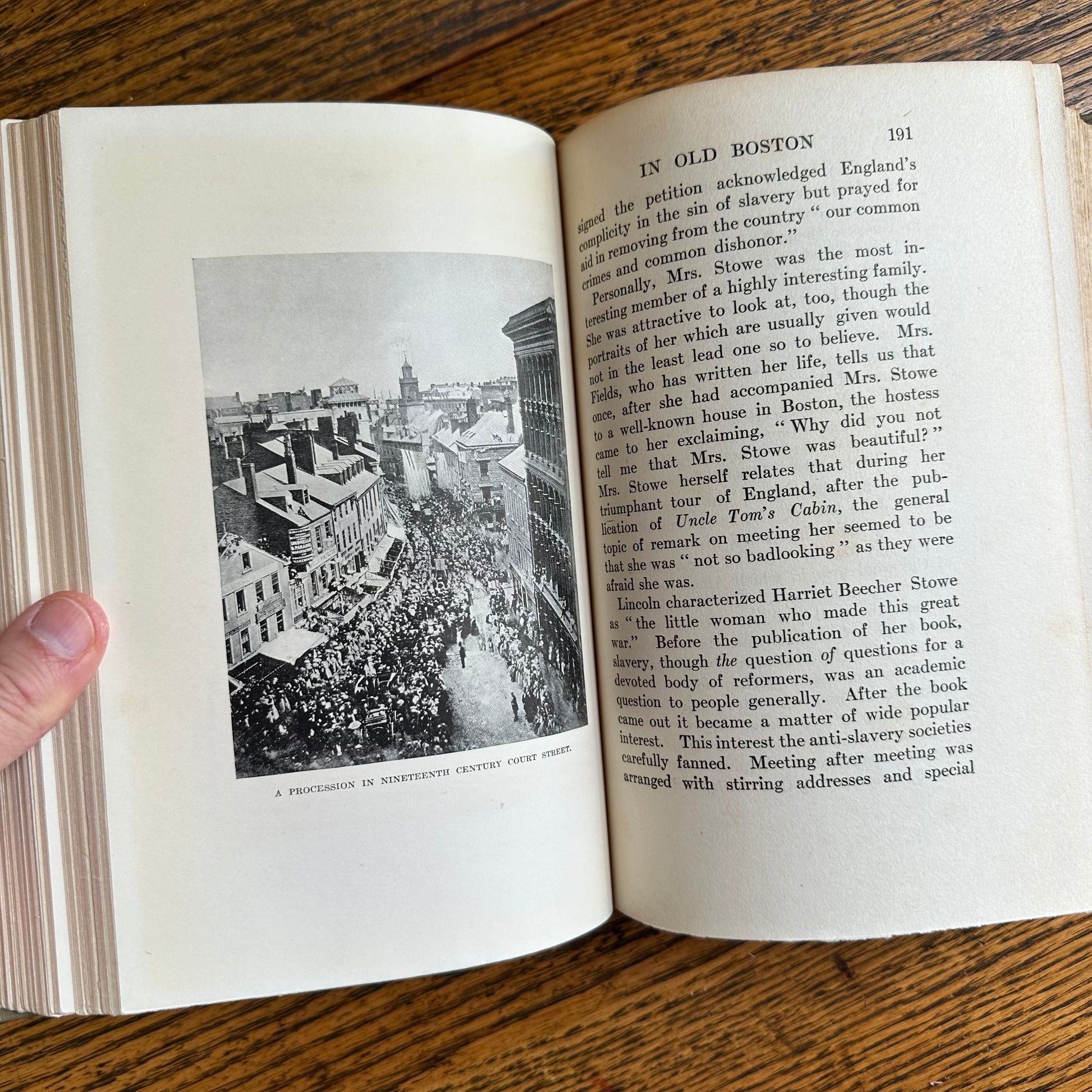 This book was published for the 100th anniversary of Boston’s graduation from a town to a city. It is a narrative account of Boston’s history, featuring many black and white photographs and illustrations of places and people. It is in good condition with one loose page. It measures 5.75” x 8.5” and contains 441 pages, including an index.