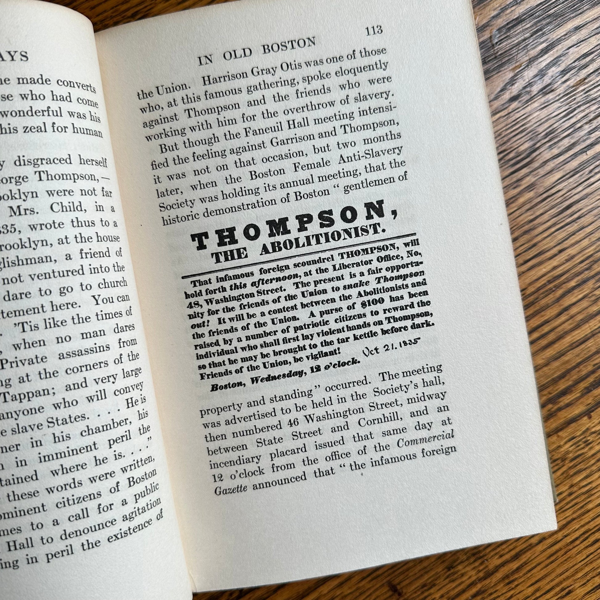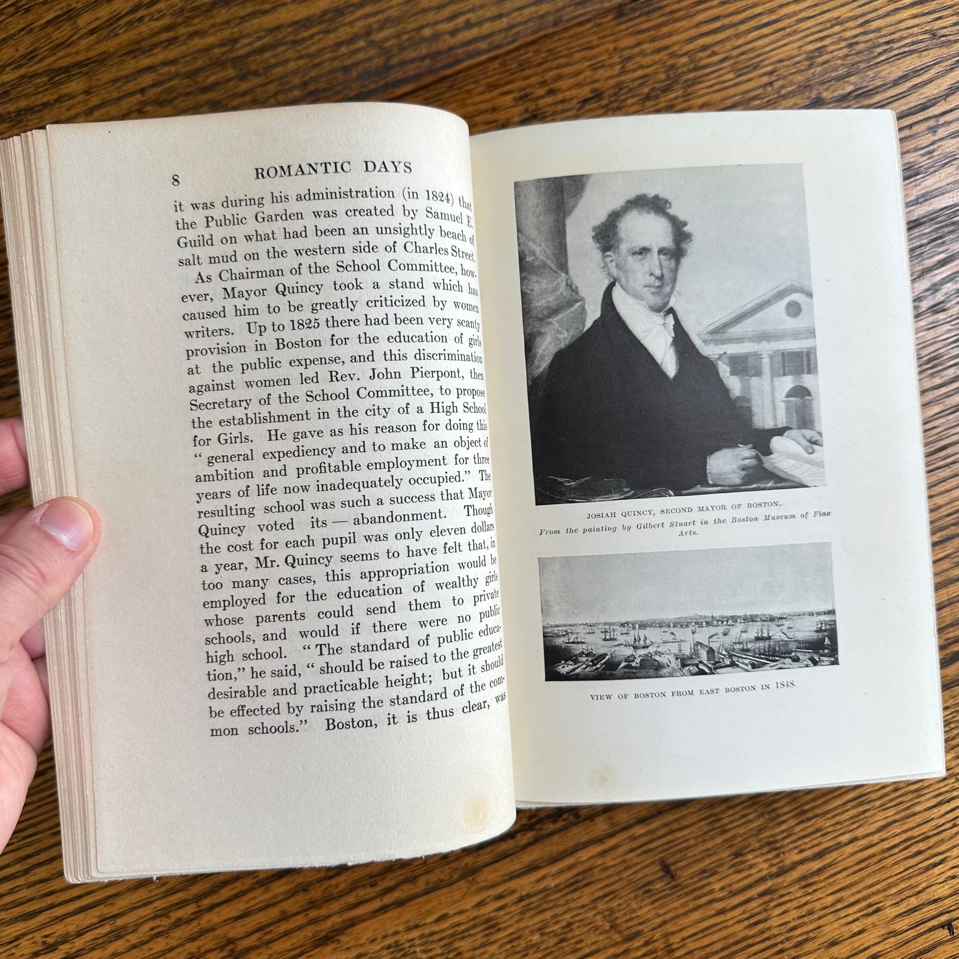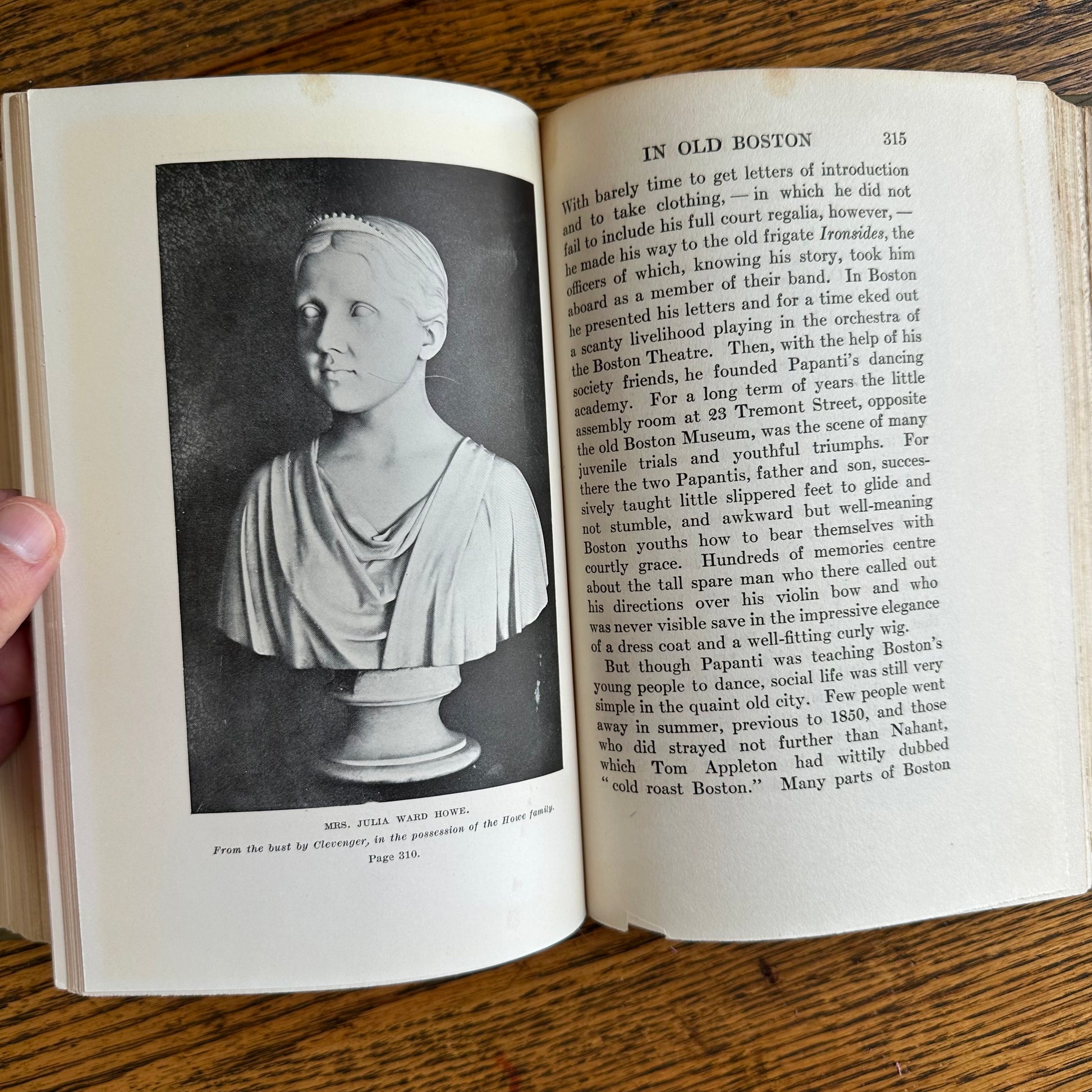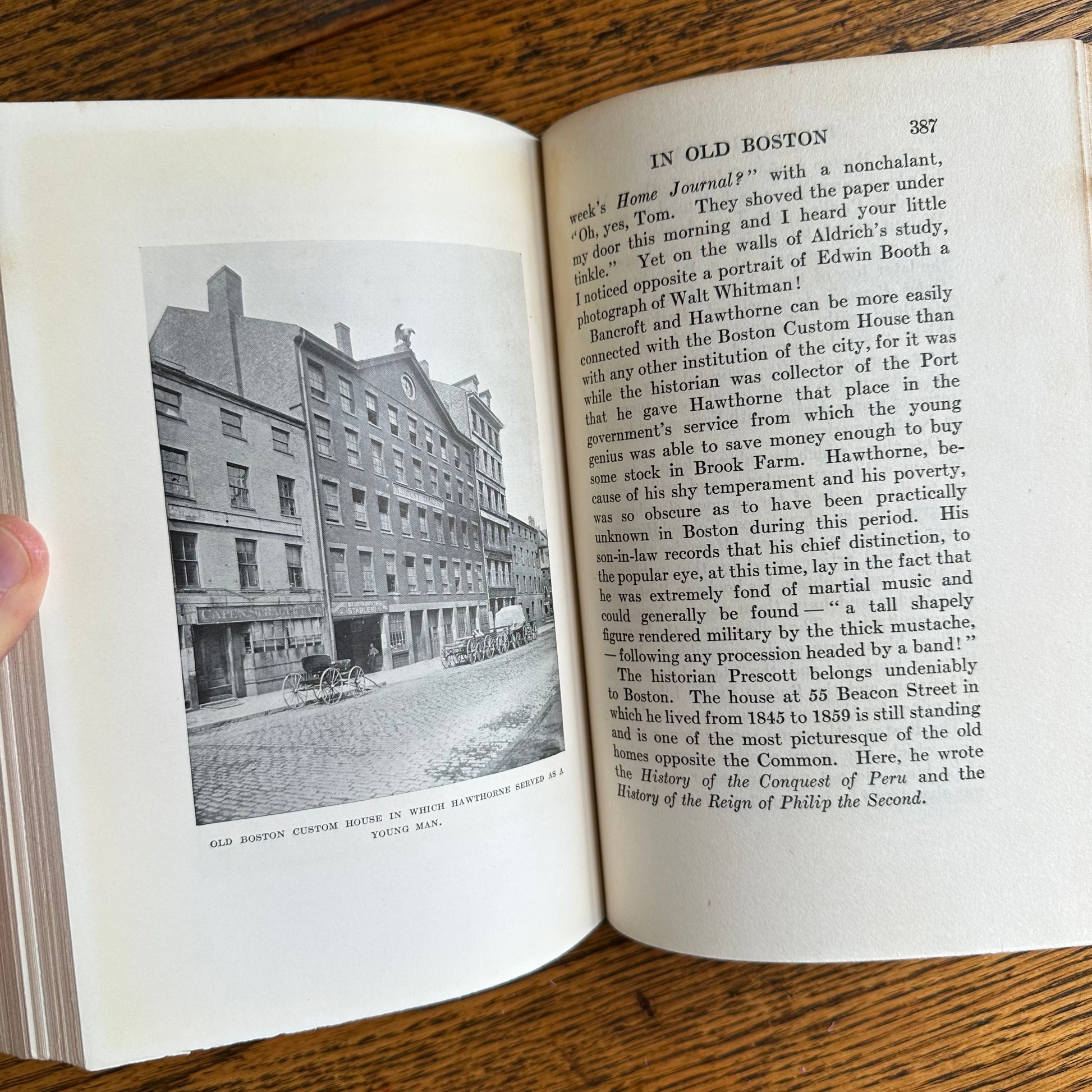 This book was published for the 100th anniversary of Boston’s graduation from a town to a city. It is a narrative account of Boston’s history, featuring many black and white photographs and illustrations of places and people. It is in good condition with one loose page. It measures 5.75” x 8.5” and contains 441 pages, including an index.