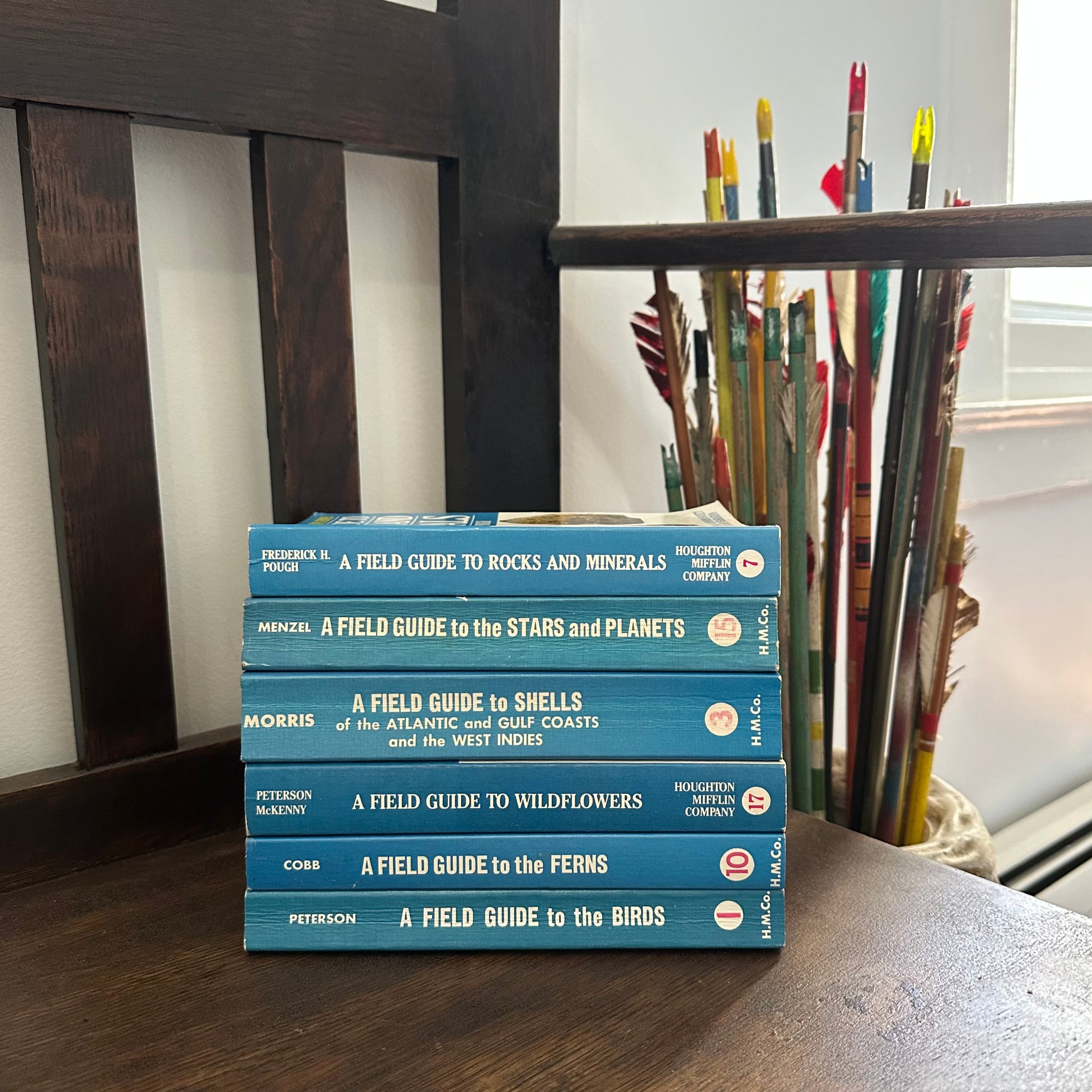 Set of 6 Vintage Peterson Field Guides | Softcover 1970s–80s Nature Books | Birds, Ferns, Wildflowers, Shells, Stars, Rocks
