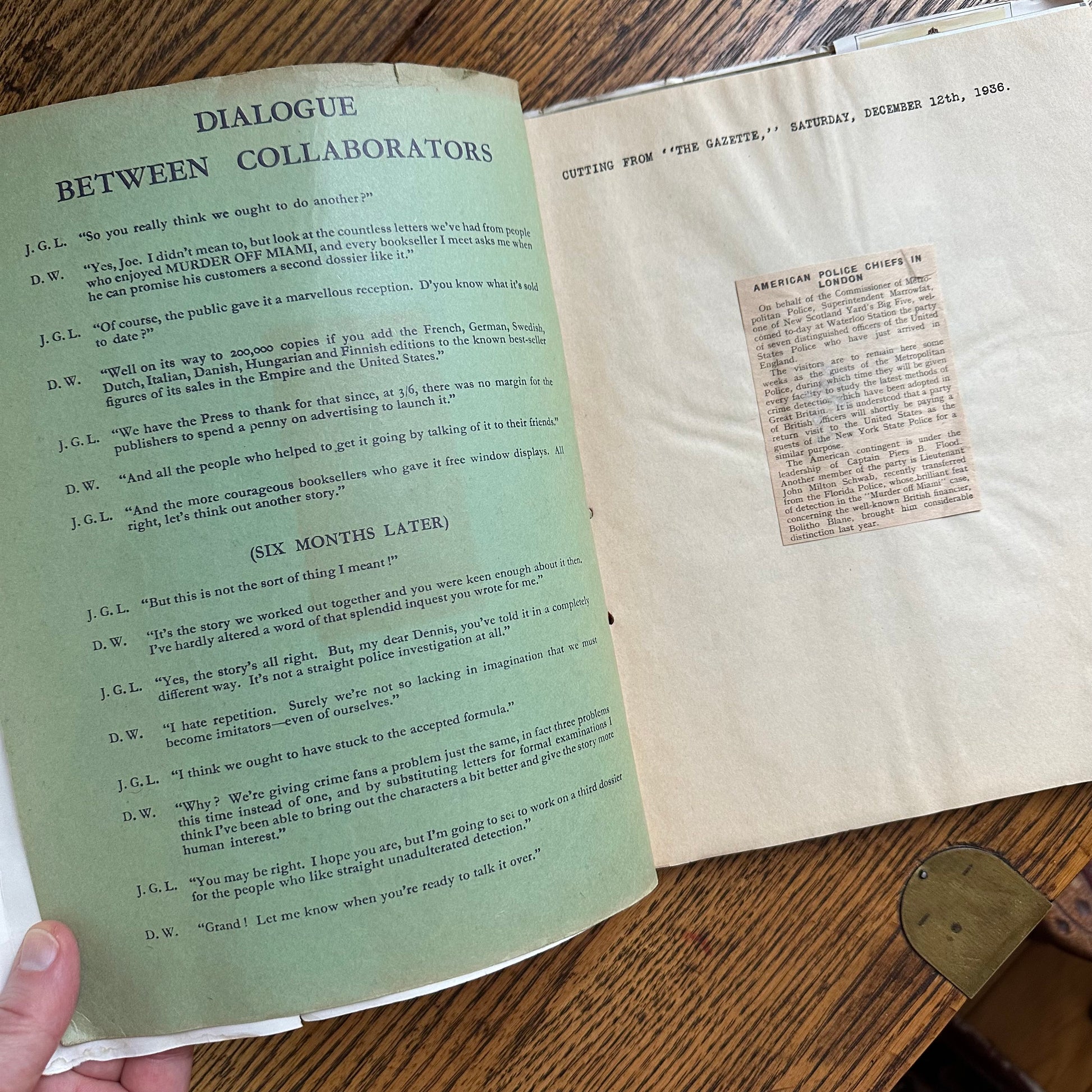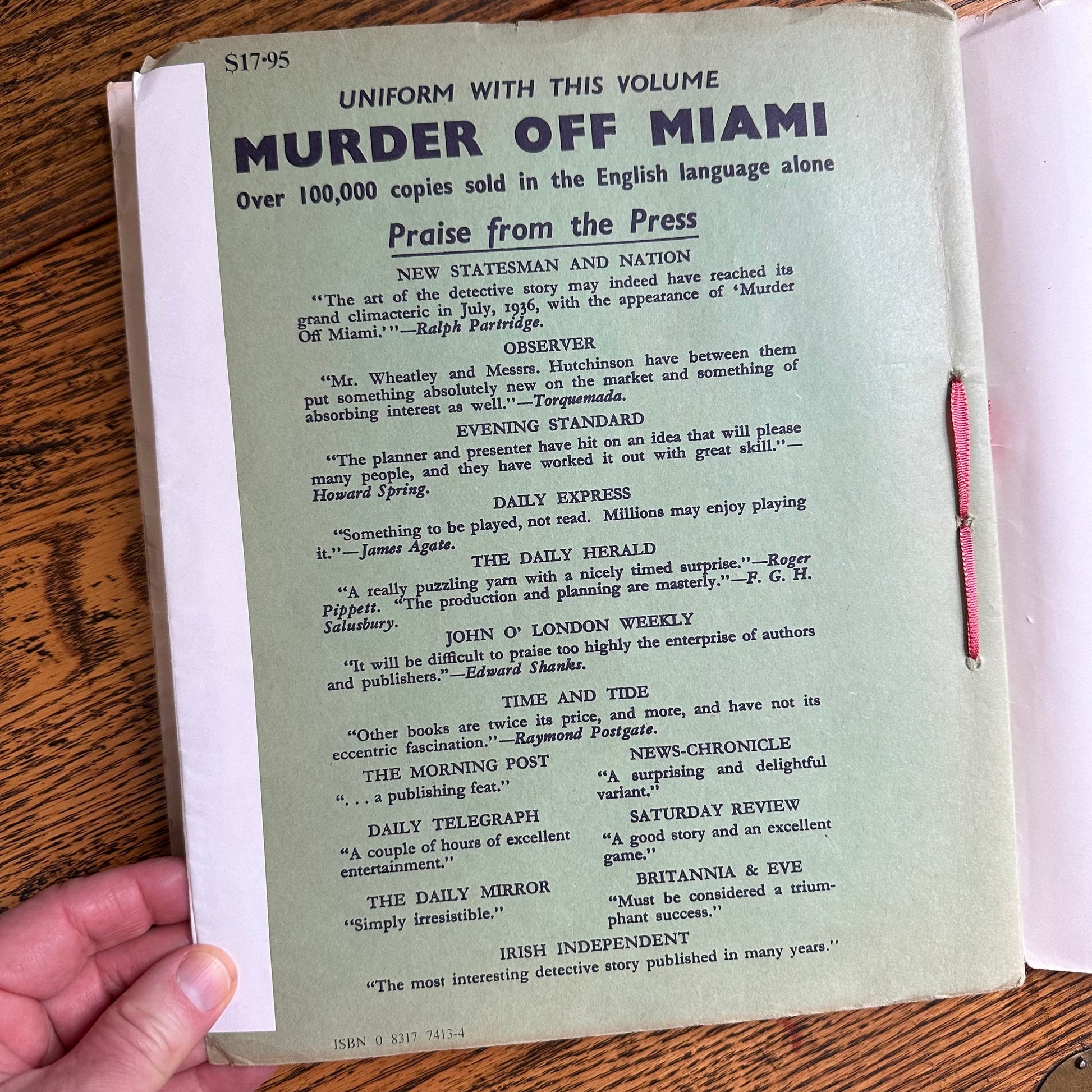 Another fabulous book from my personal collection. This is a crime dossier by Dennis Wheatley, published in 1980 by Mayflower Books. It contains 100+ pages with “evidence” that you can use to solve the mystery. If you’re not a great detective, you’ll find the solution in a sealed section inside the back cover. This softcover dossier has not been used, so it is in perfect condition, but because it’s 45 years old, the dust jacket shows some age. Measures 8.5” x 10.25”.