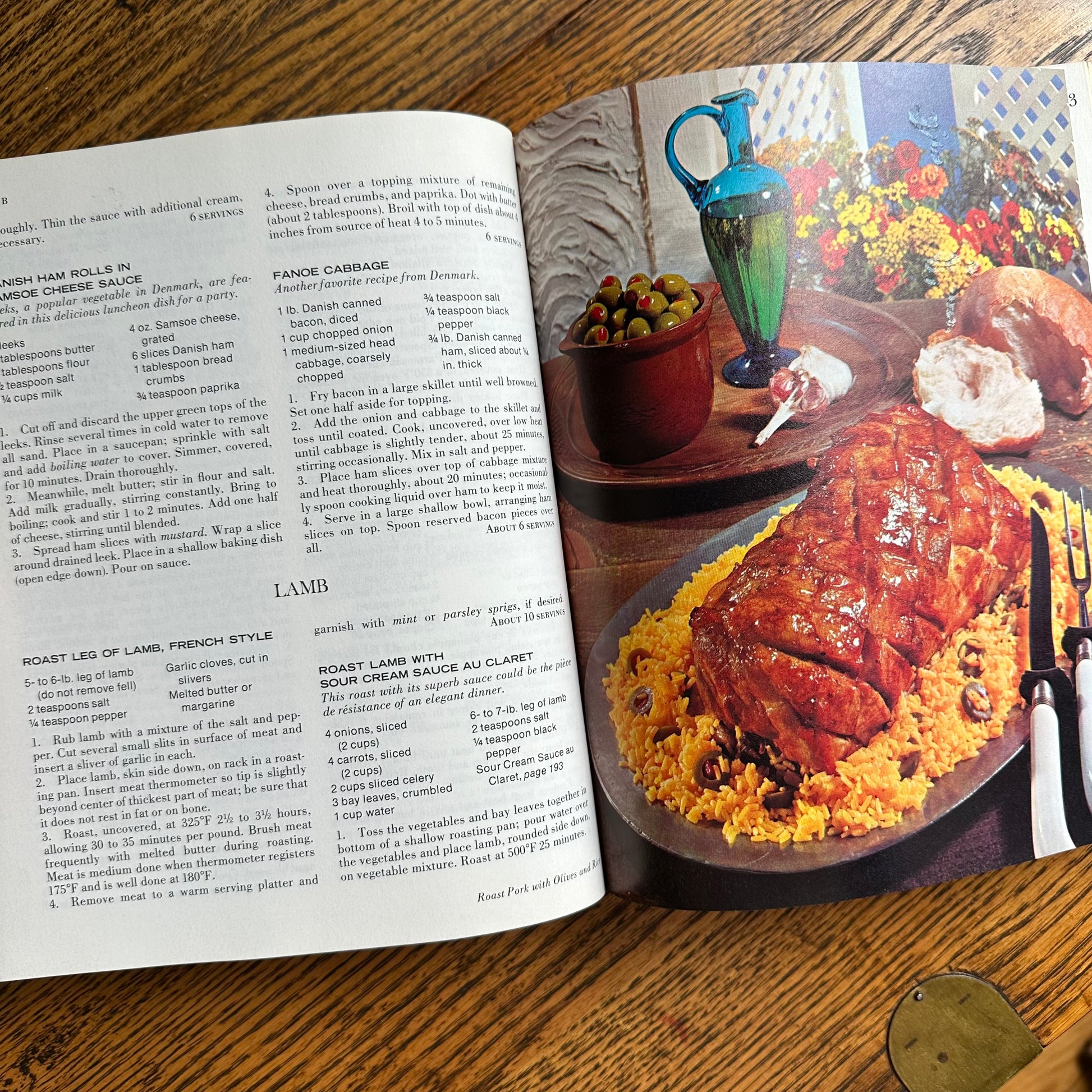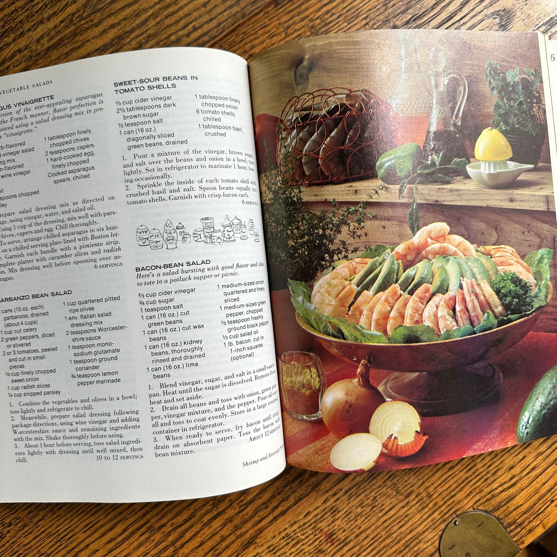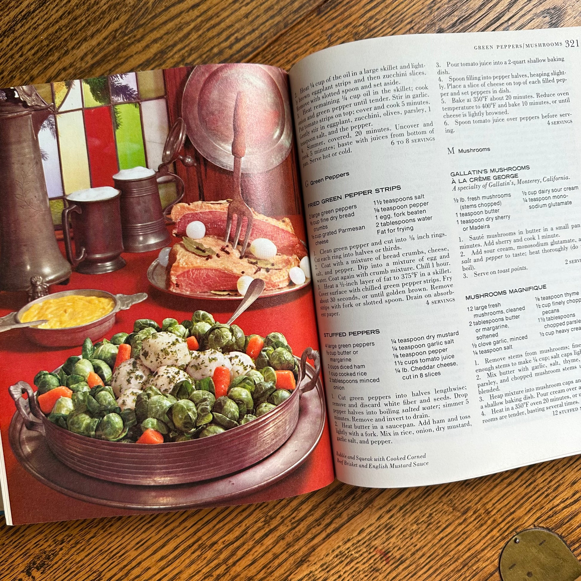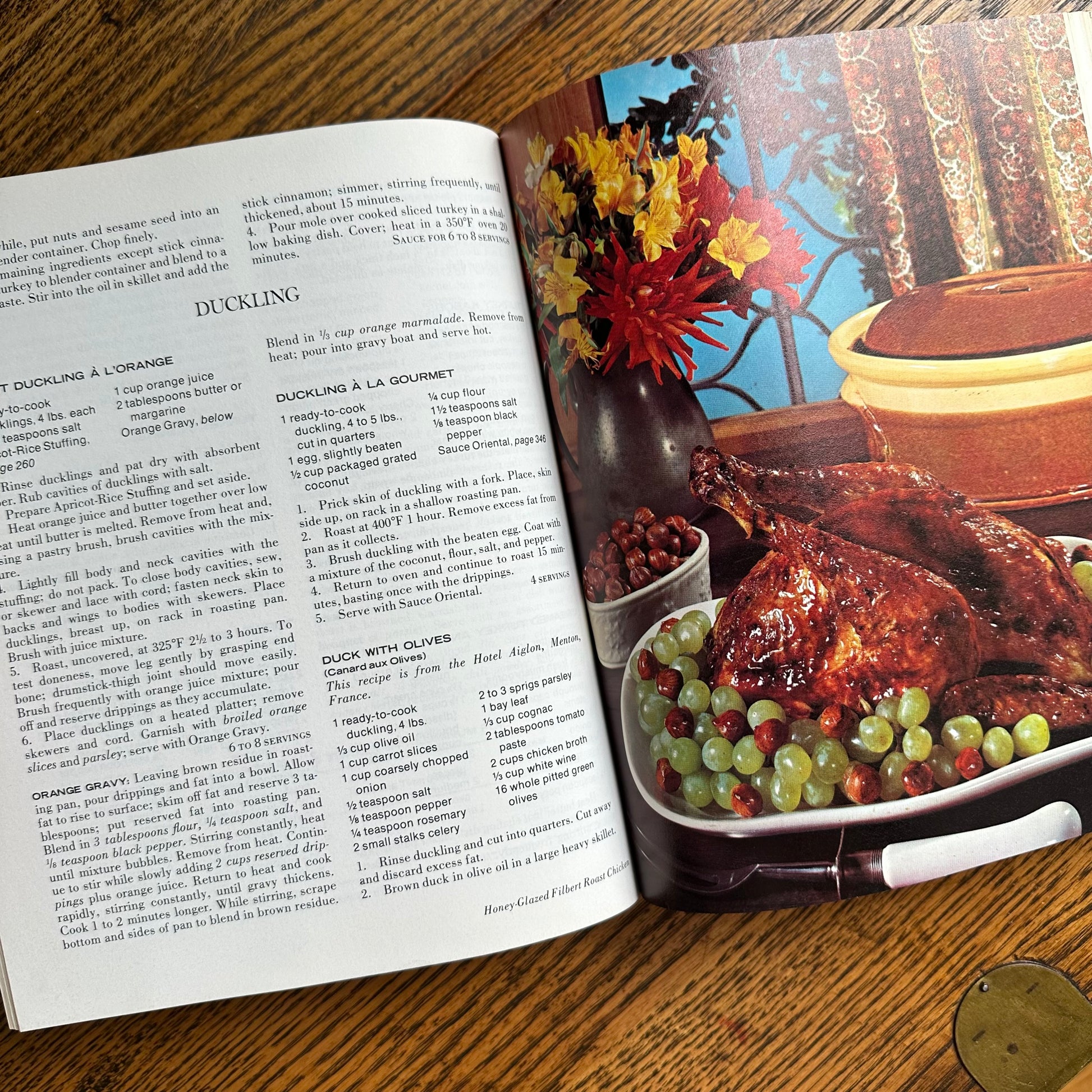 A big, illustrated, vintage cookbook for your kitchen! This cookbook is comprehensive, covering culinary know-how, shopping, entertaining, recipes, and meal planning. You’ll find great 70s color photography throughout. This cookbook measures 7.75” x 9.5” and contains 800 pages. It is in good to great condition.