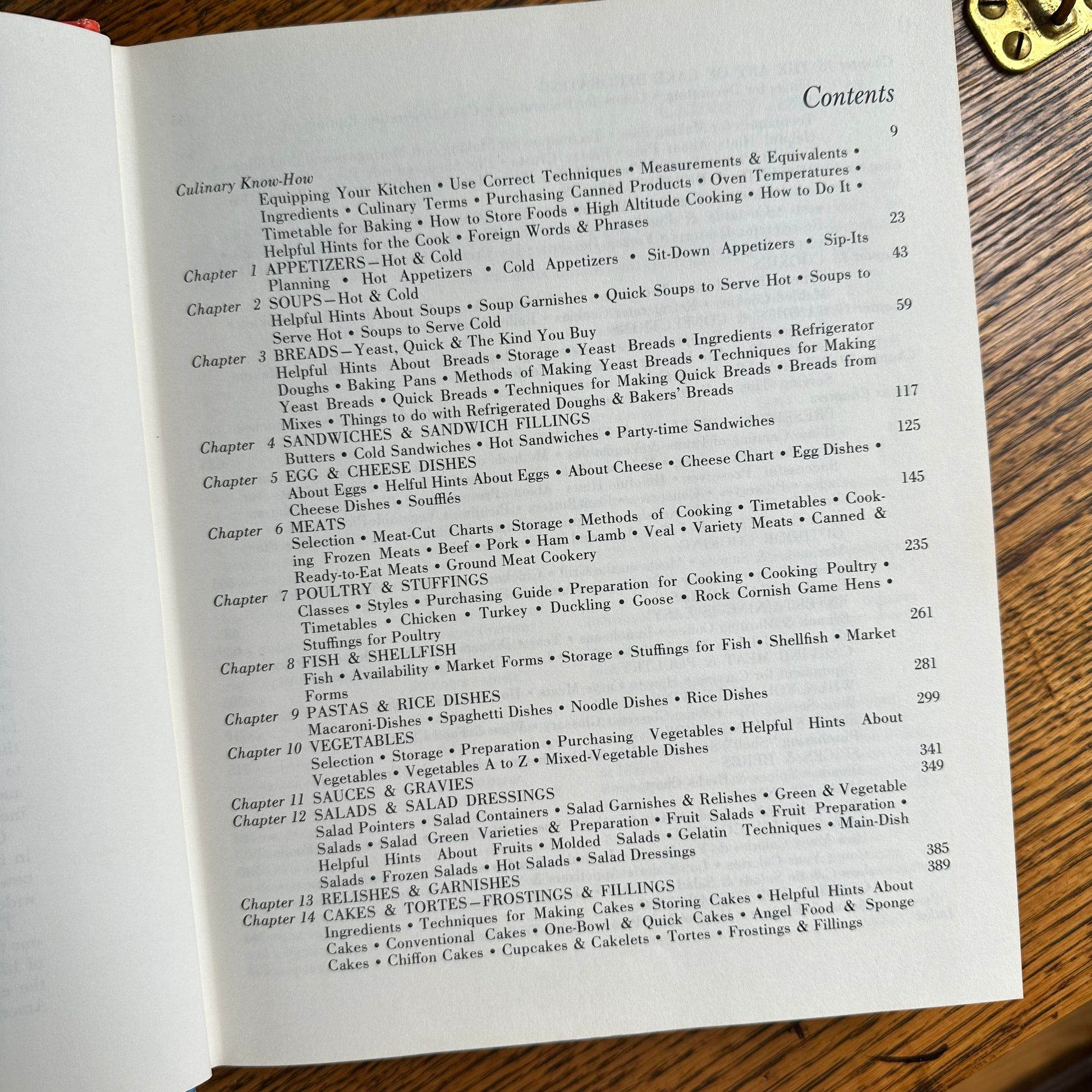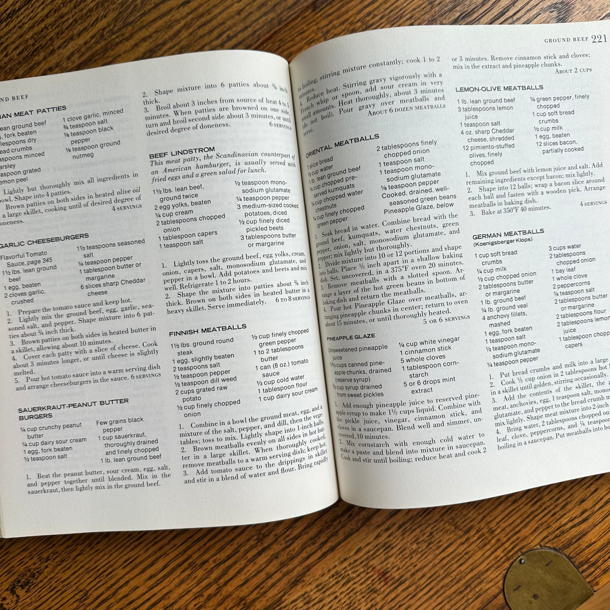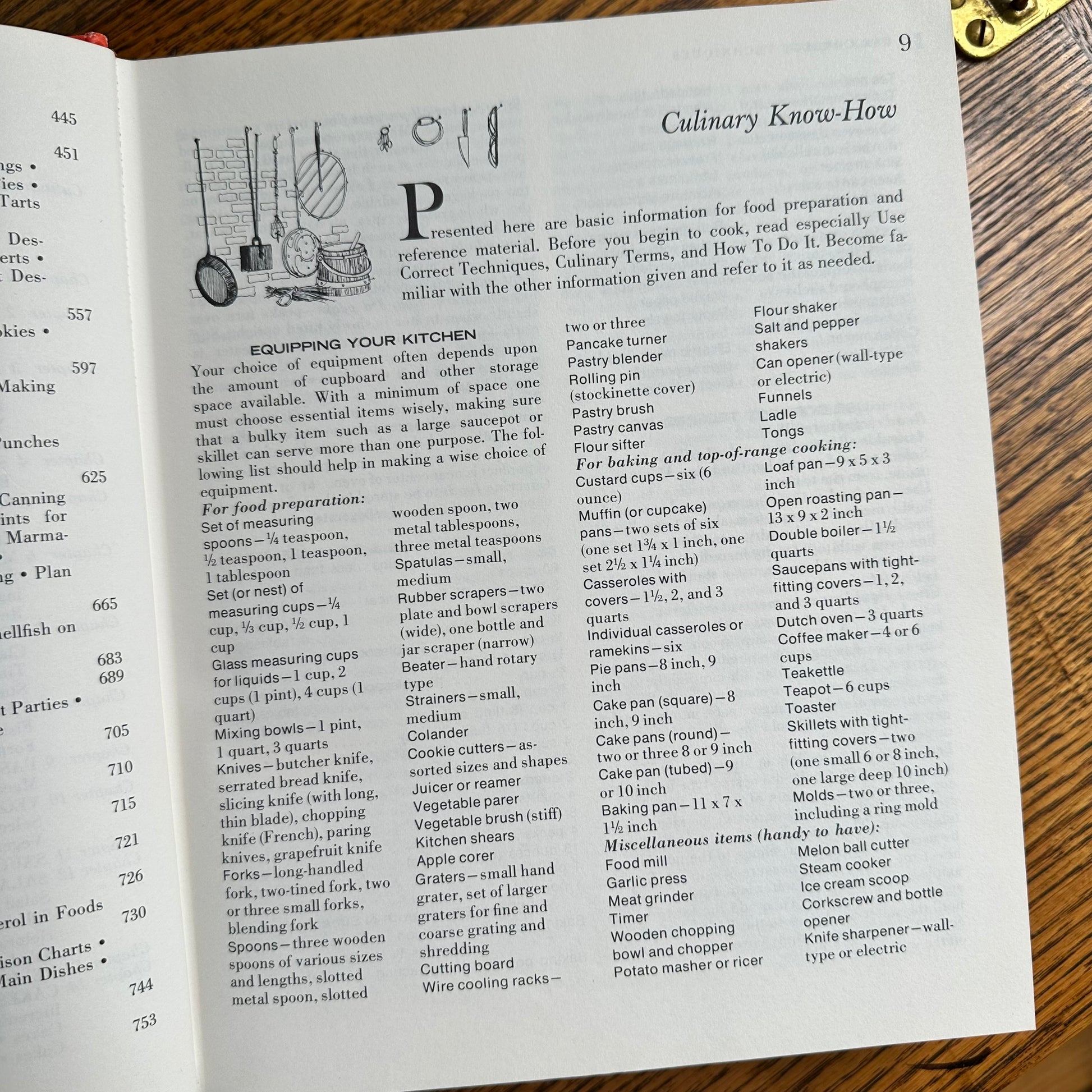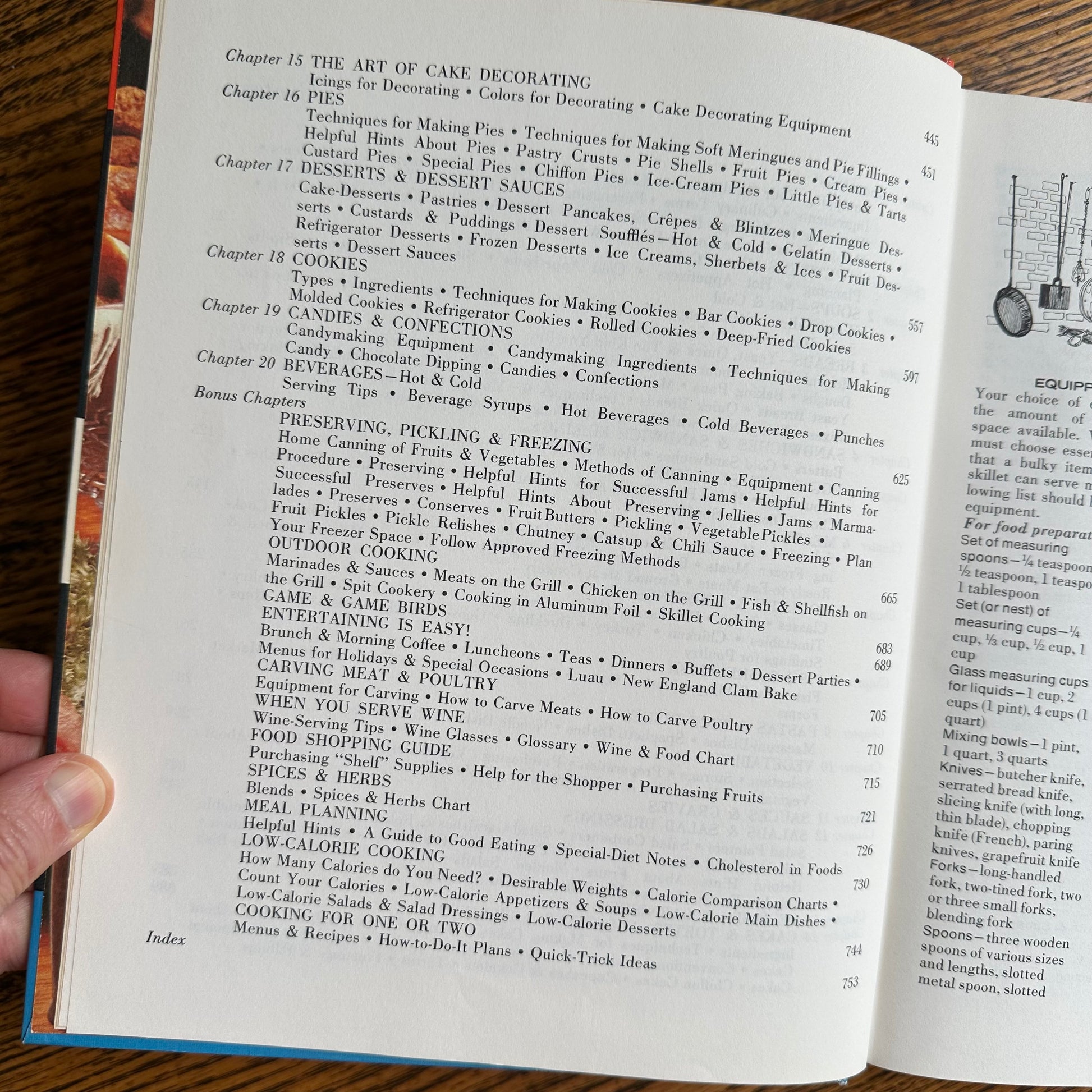 A big, illustrated, vintage cookbook for your kitchen! This cookbook is comprehensive, covering culinary know-how, shopping, entertaining, recipes, and meal planning. You’ll find great 70s color photography throughout. This cookbook measures 7.75” x 9.5” and contains 800 pages. It is in good to great condition.