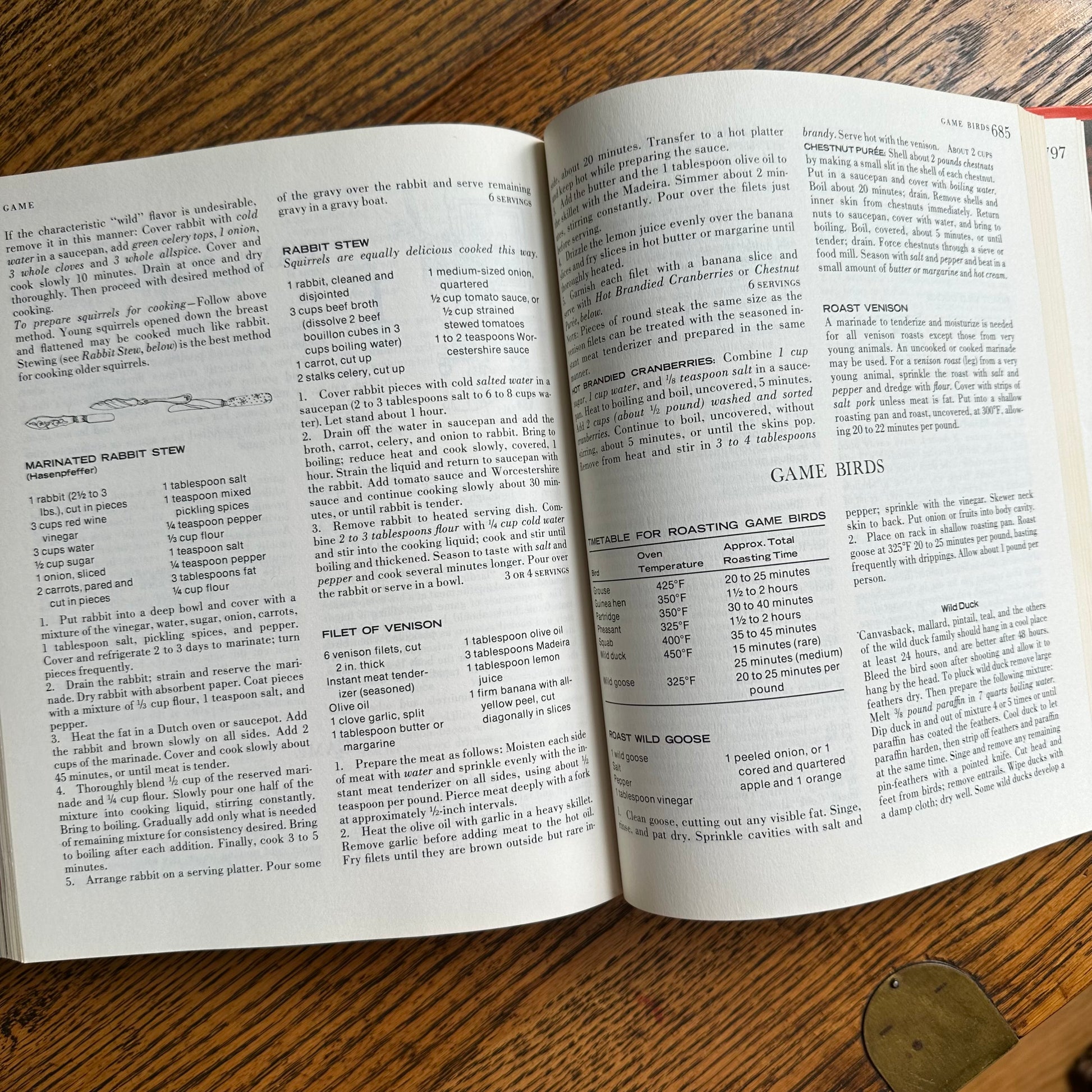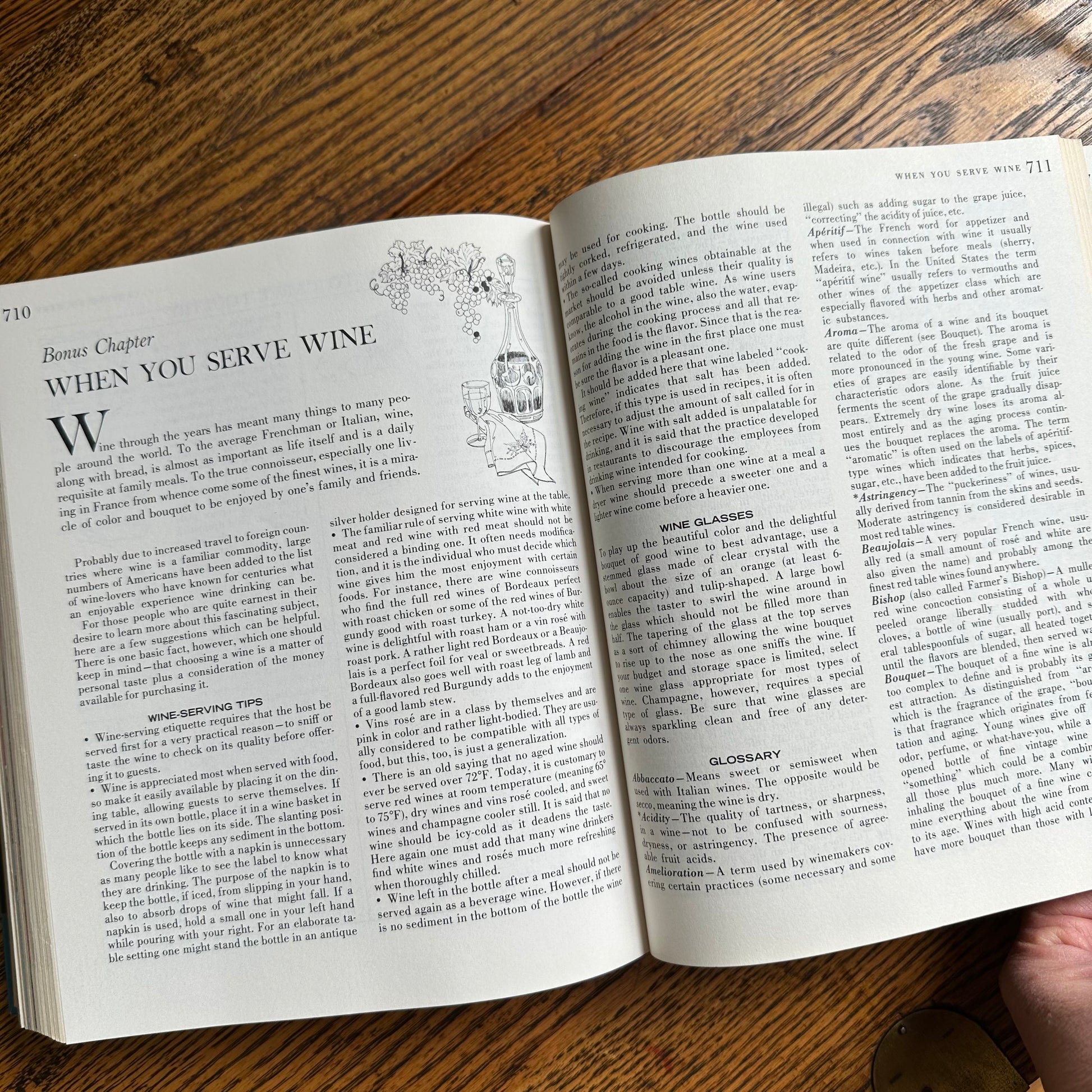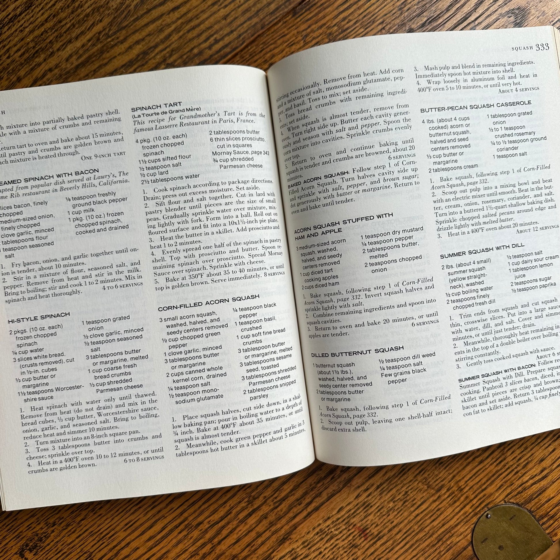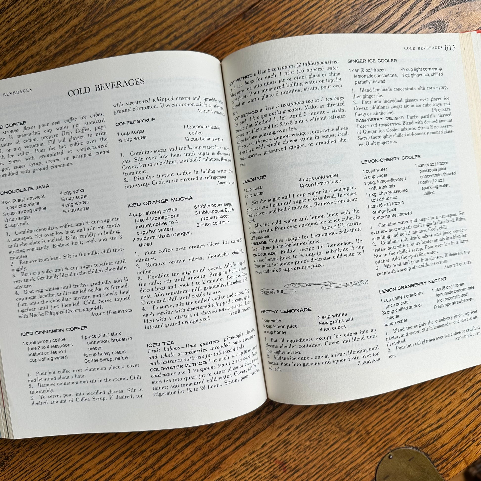 A big, illustrated, vintage cookbook for your kitchen! This cookbook is comprehensive, covering culinary know-how, shopping, entertaining, recipes, and meal planning. You’ll find great 70s color photography throughout. This cookbook measures 7.75” x 9.5” and contains 800 pages. It is in good to great condition.