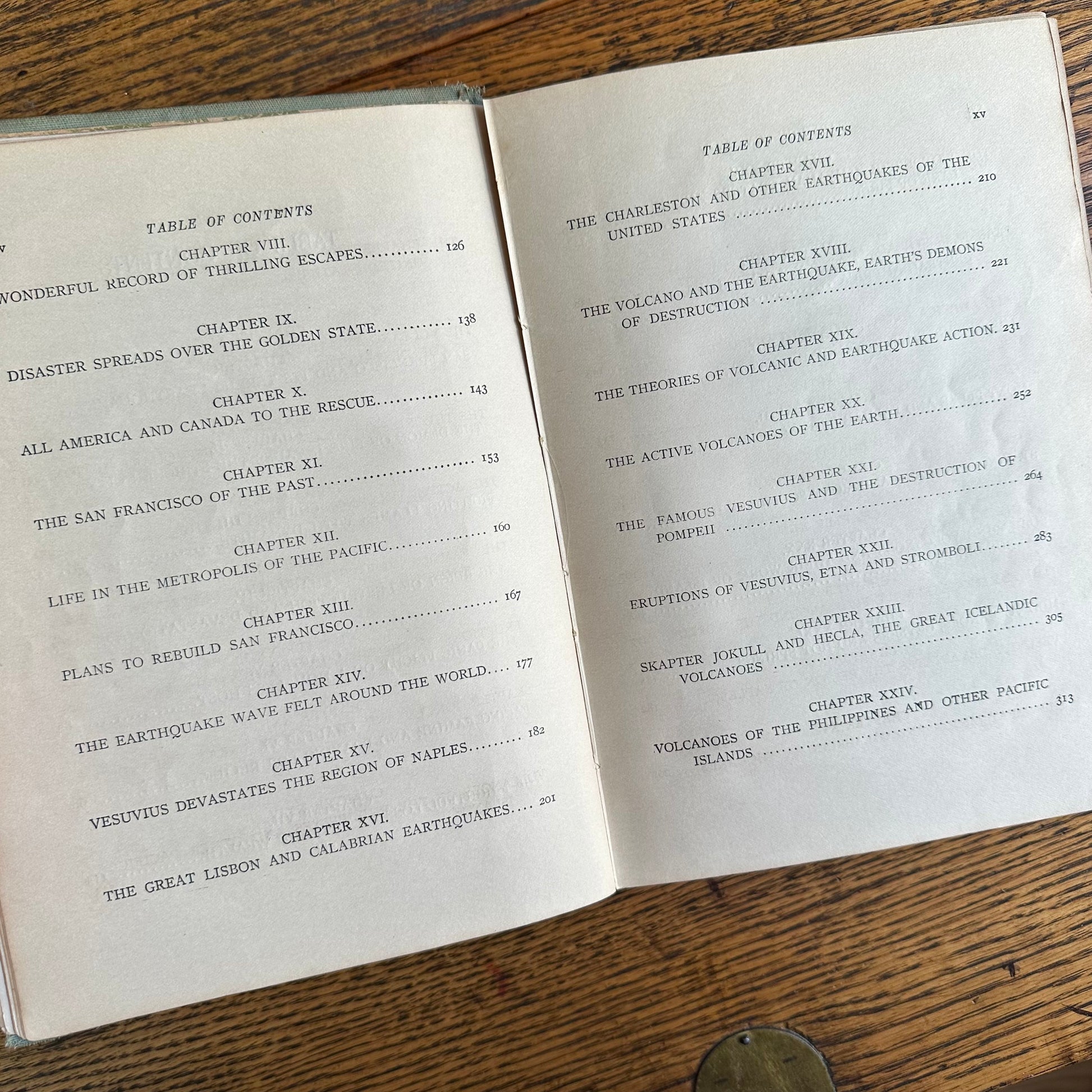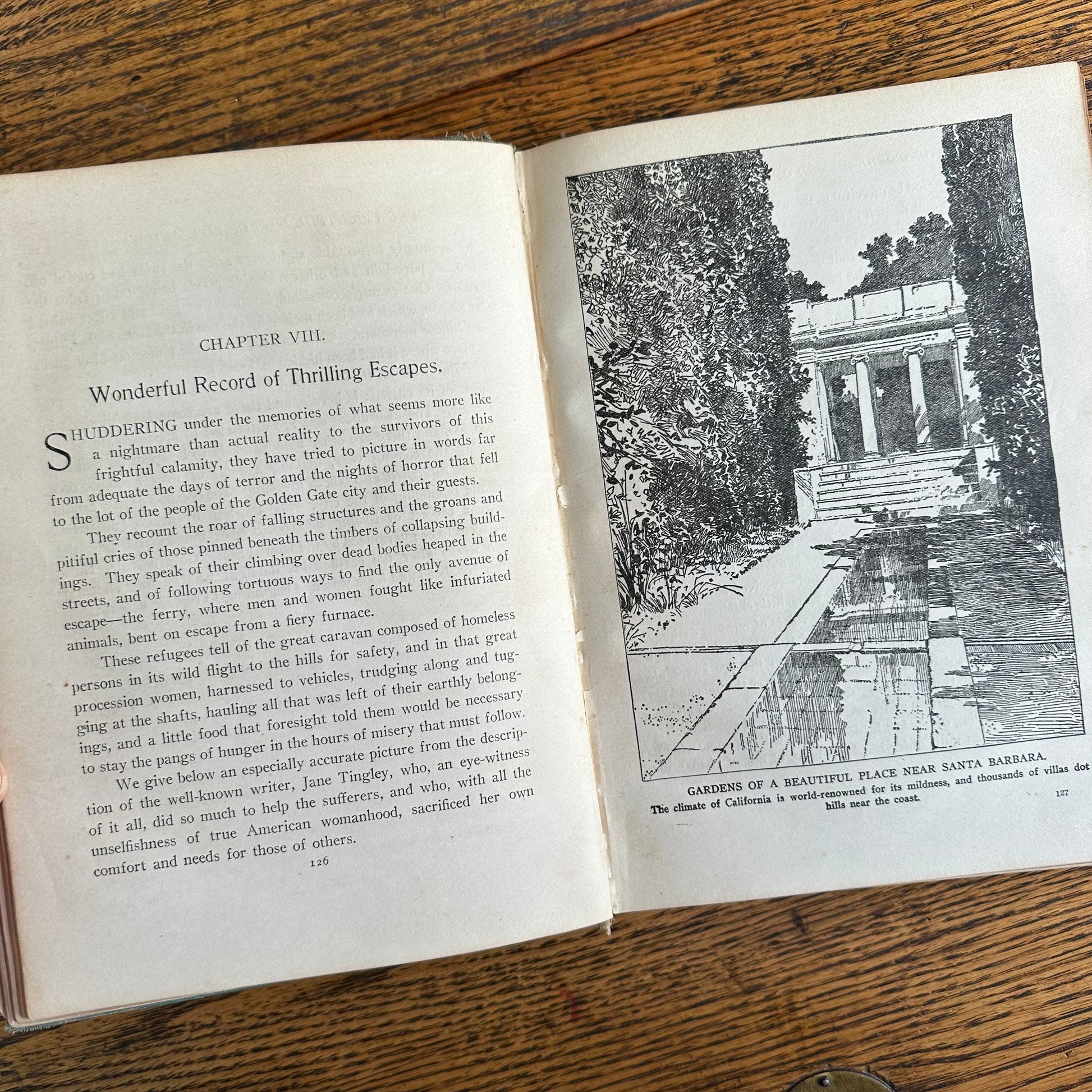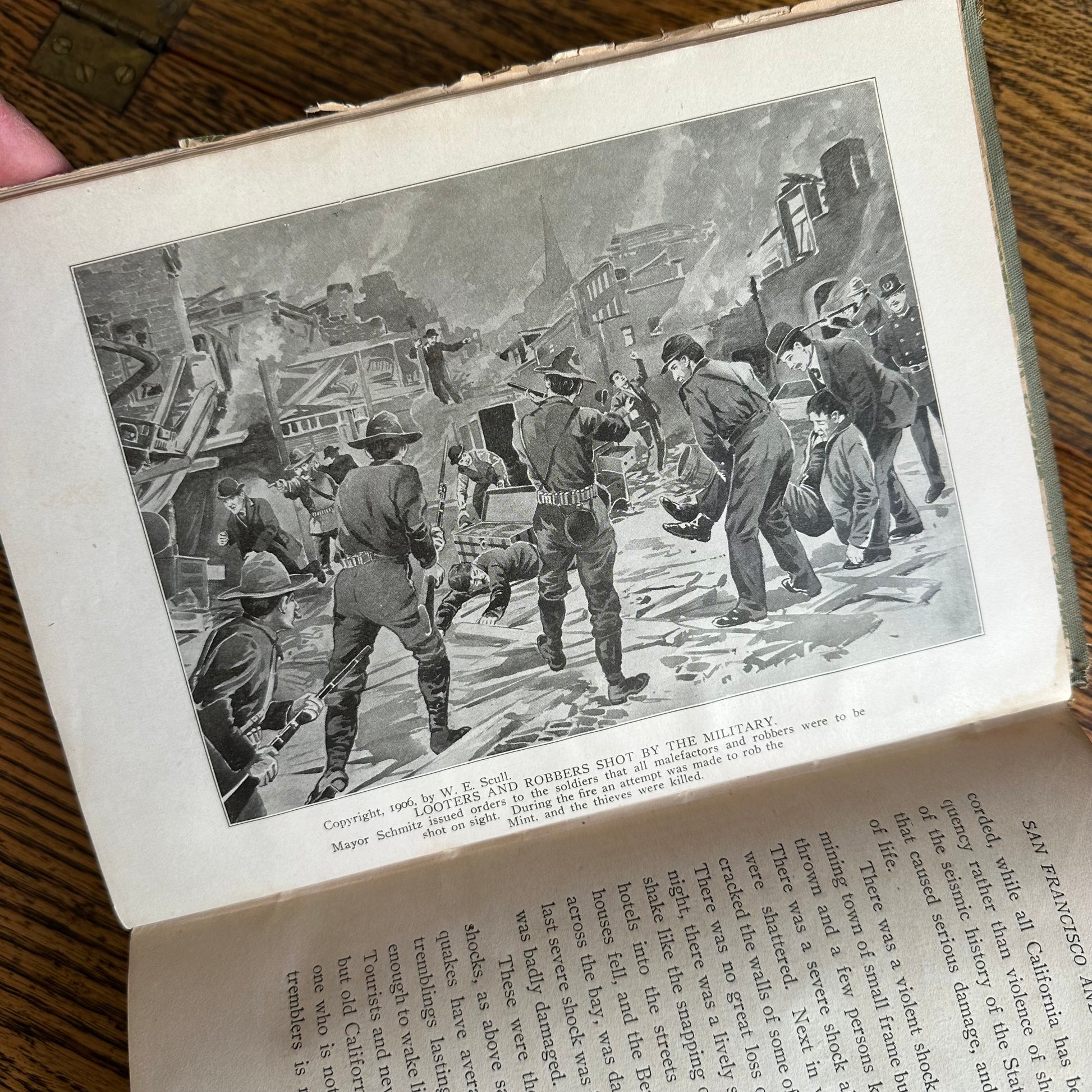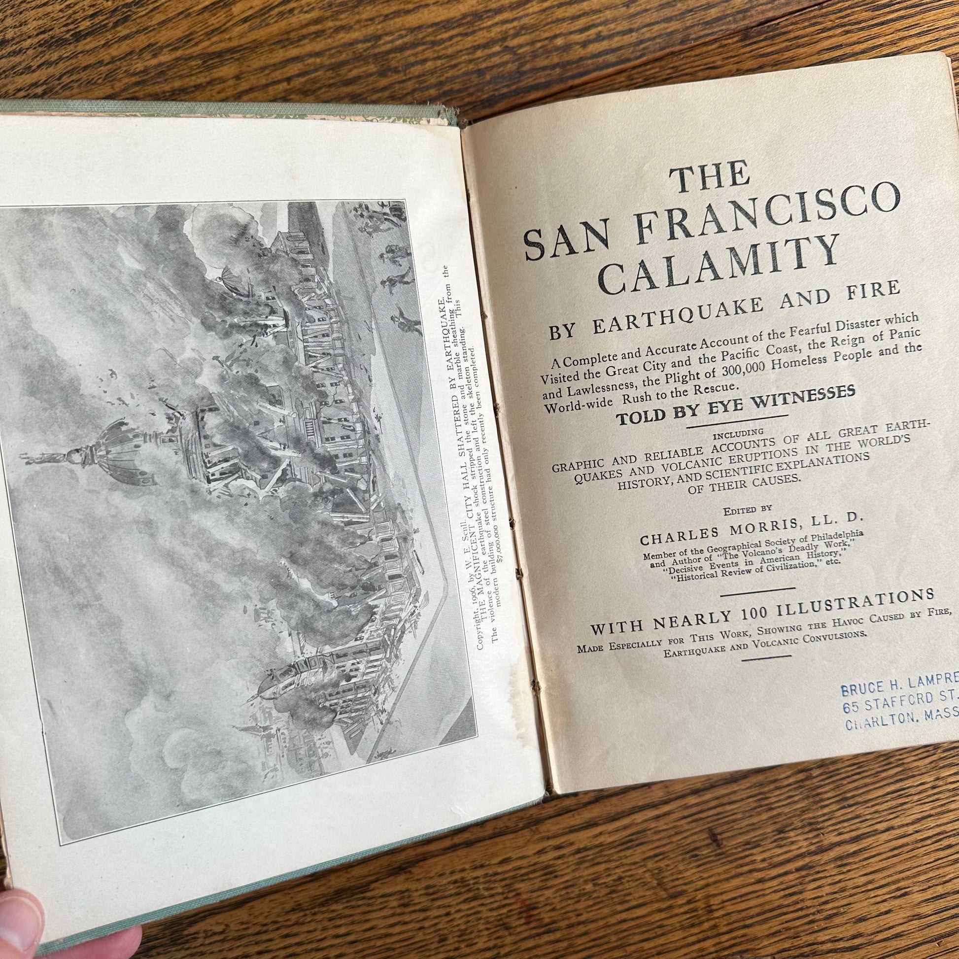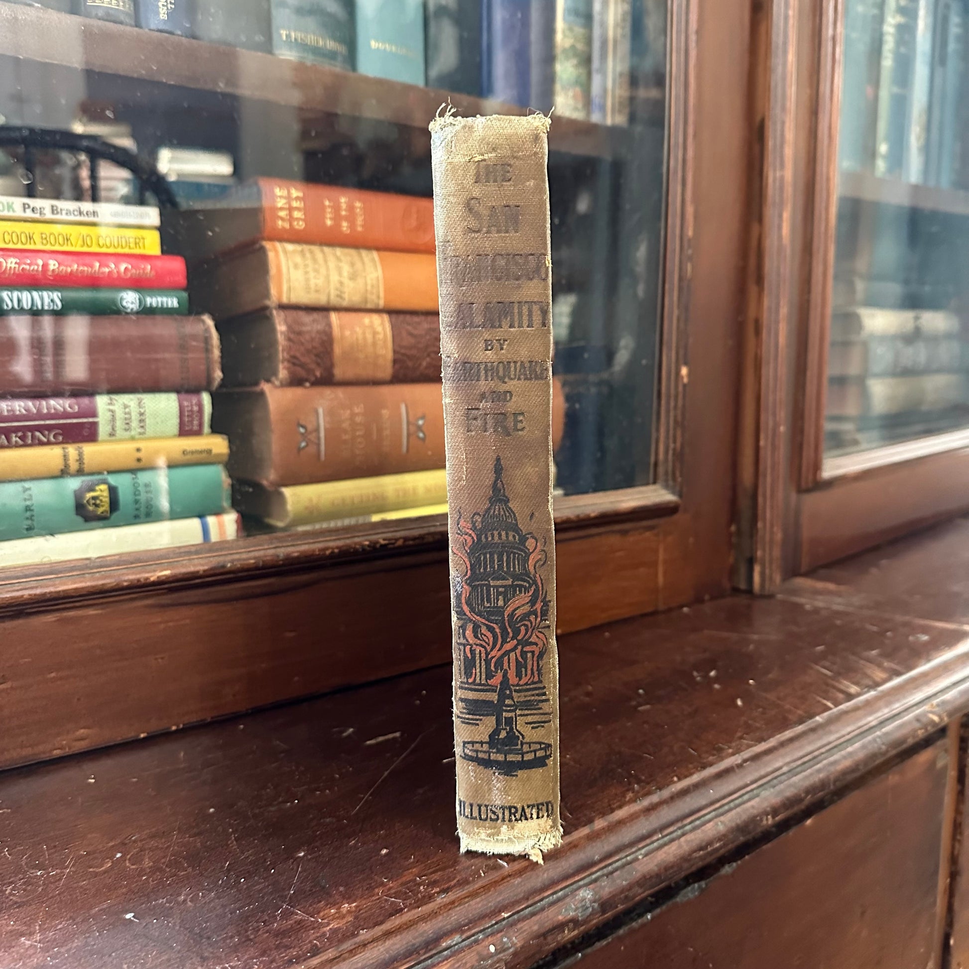 This is a great historical book containing a complete and accurate account of the disasters that plagued San Francisco, as well as accounts of great earthquakes and volcanic eruptions. It contains nearly 100 great illustrations. It is in fair condition, but remains perfectly readable. The cover is a bit stained and tattered, but the graphics are just great! The 446 pages are in good condition. 6.75” x 9.25”.