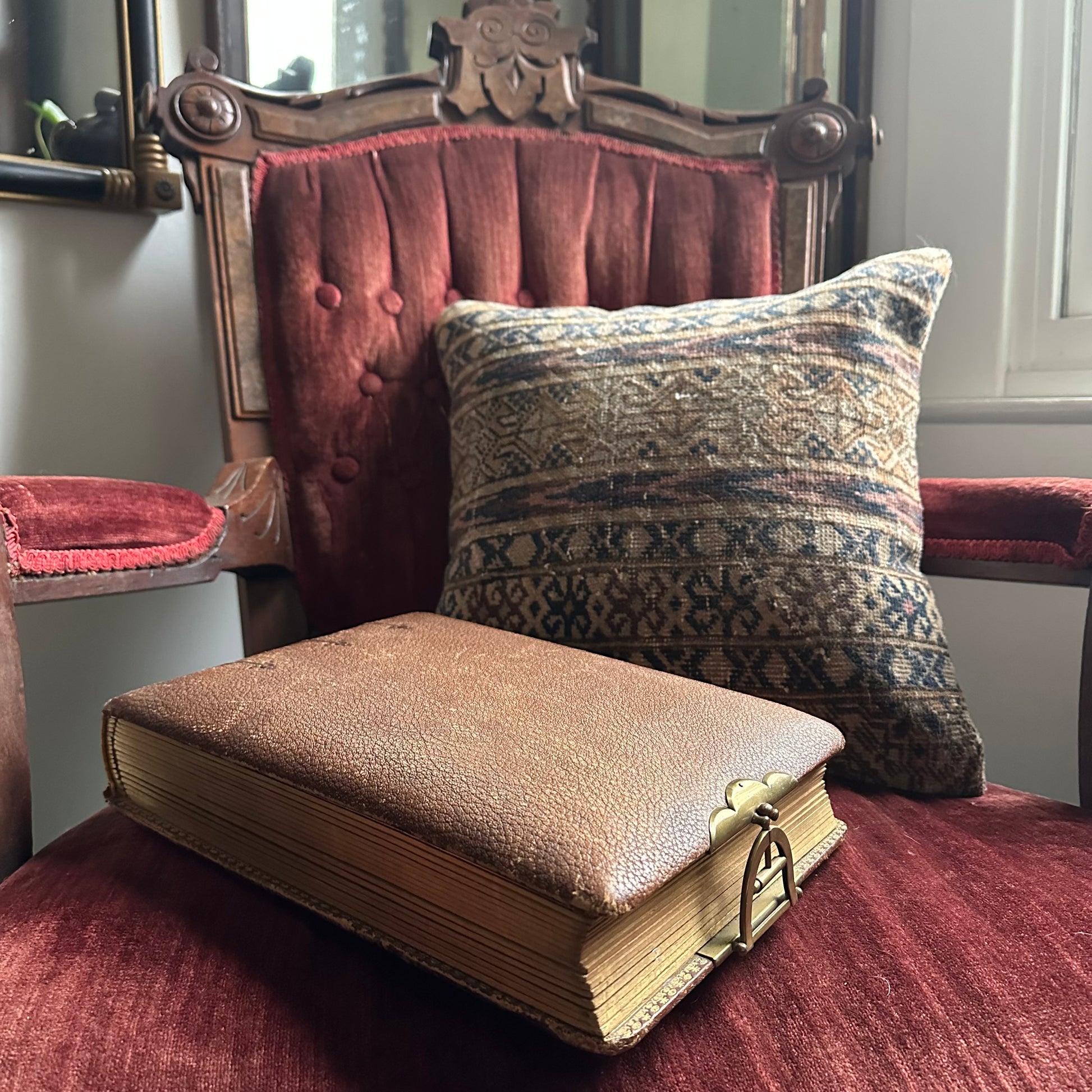 Yet another selection from my personal collection! This is a victorian-era, 1800s photo album with a rich, padded leather cover and brass latch. The thick pages have gilt edging. This album contains a maximum of two portraits per page, for a total of 59 portraits. Four photo slots are empty. The portraits include men, women, babies, children, and families. This album is in wonderful condition for its age. 11.5” x 8.5” and 3” thick.
